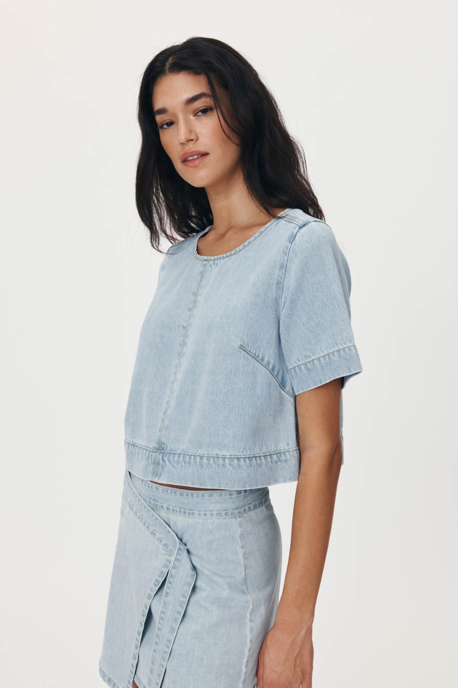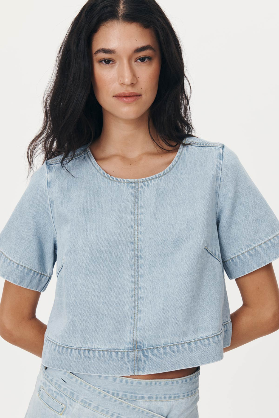 The Davie Top brings a fresh take on classic denim. With a boxy silhouette, exposed metal zip, and heavy topstitching, this piece offers a cool, urban vibe, balanced by a faded wash and soft vintage hand feel.