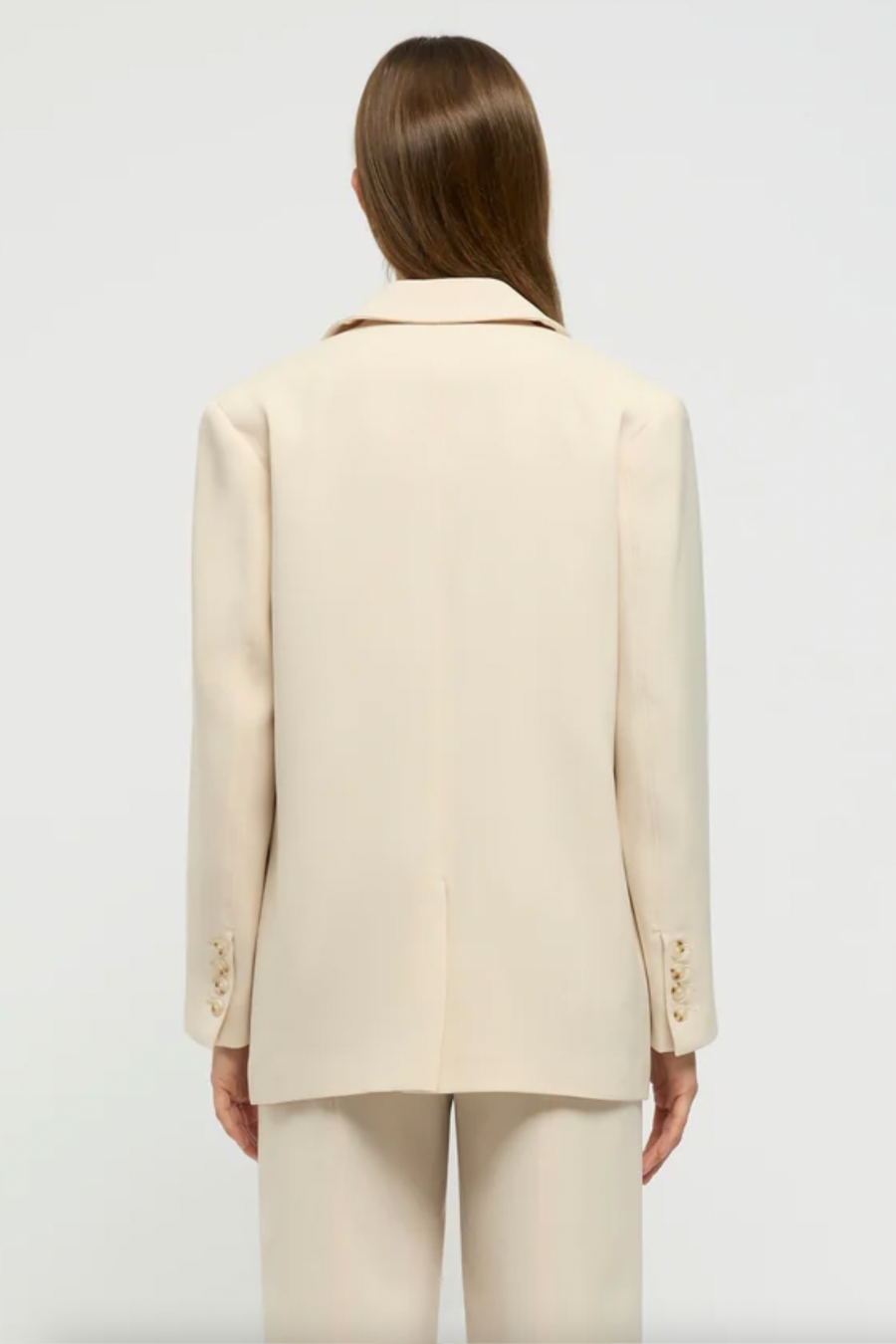 A luxe single breasted blazer, cut from a smooth medium weight suiting fabrication. A timeless wardrobe staple, designed in a relaxed tailored fit, finished with tortoiseshell button detailing.