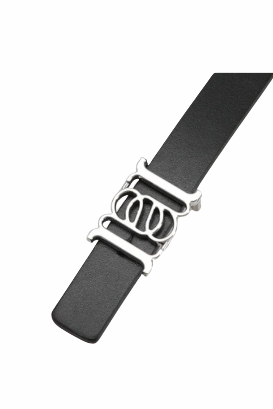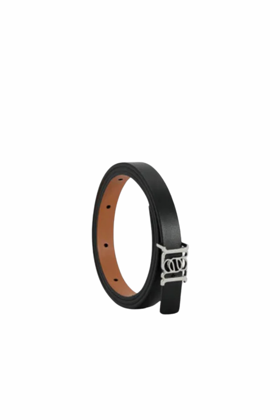 Double-sided belt in smooth calfskin with an ANNALOCH monogram gold buckle. 1.5cm width, adjustable in 5 steps