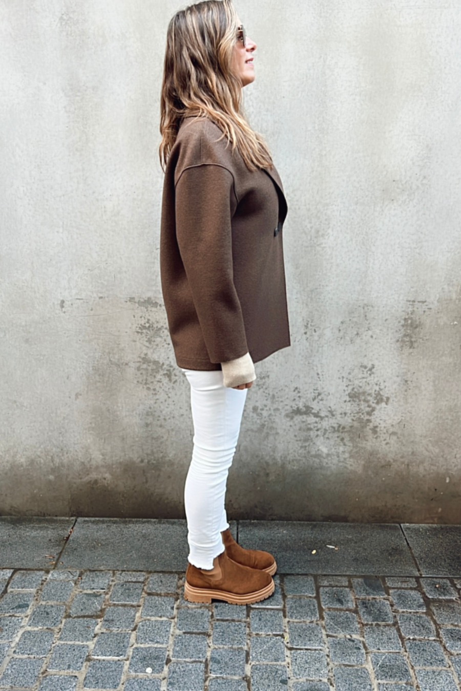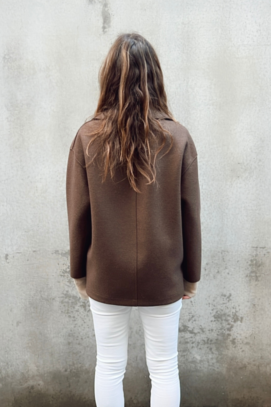 Dropped Shoulder Double Breasted Jacket Teddy Brown