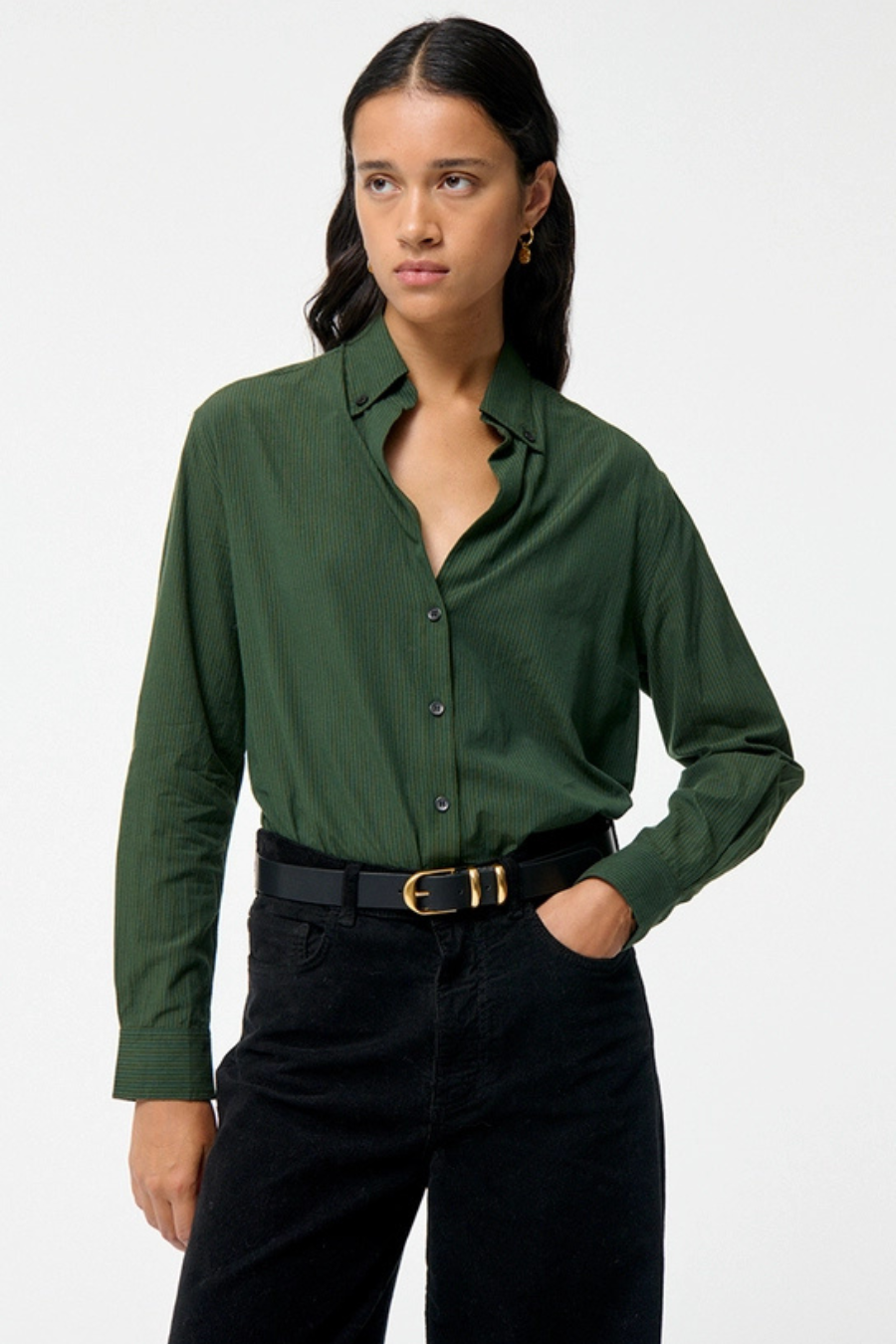 An easy-to-wear blouse that is both structured and flowing, for a chic, casual look.