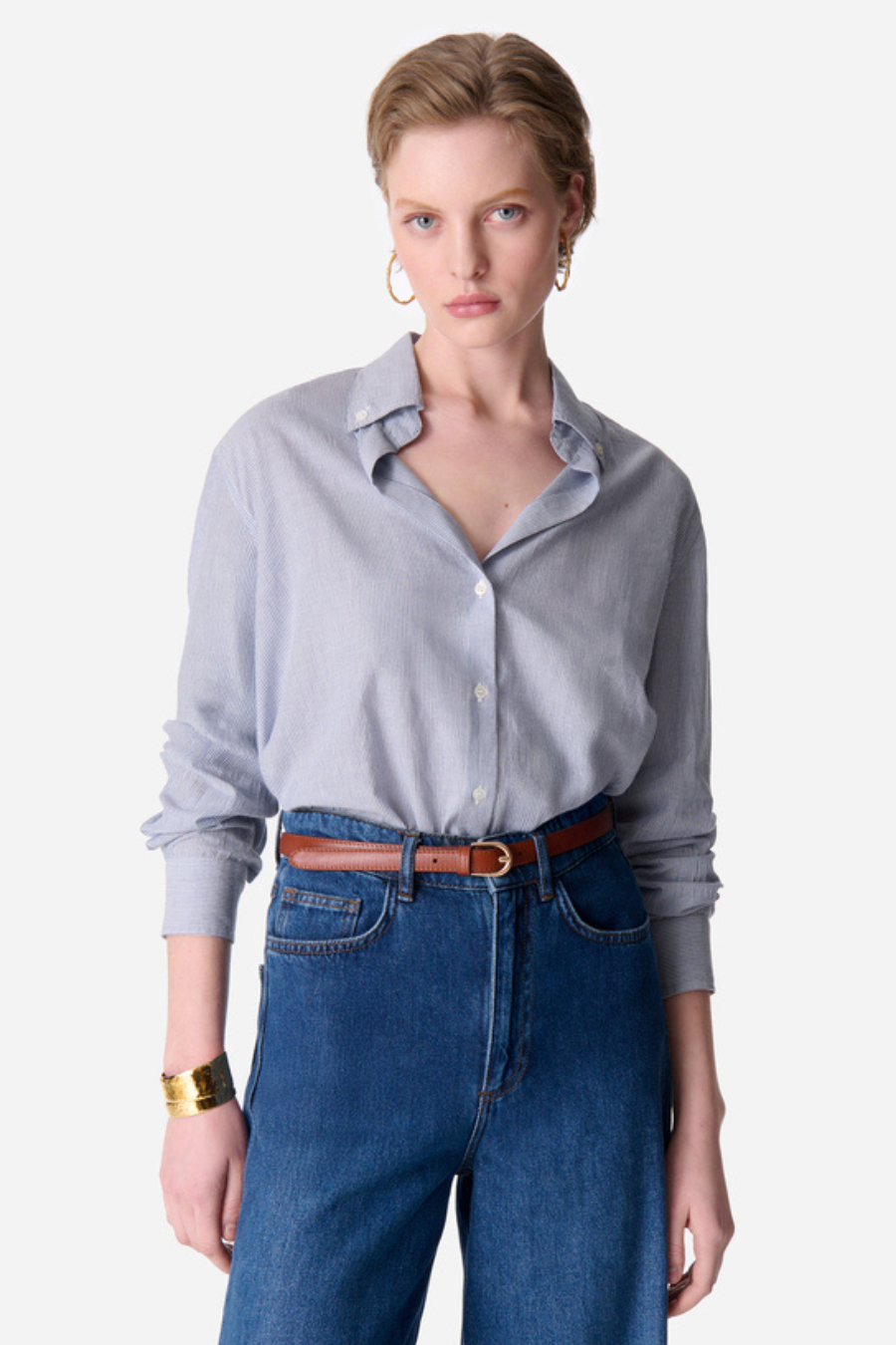 A wardrobe essential, this shirt goes with any look for a classic and elegant touch. A boyish cut with a feminine twist on the neckline... We love it.