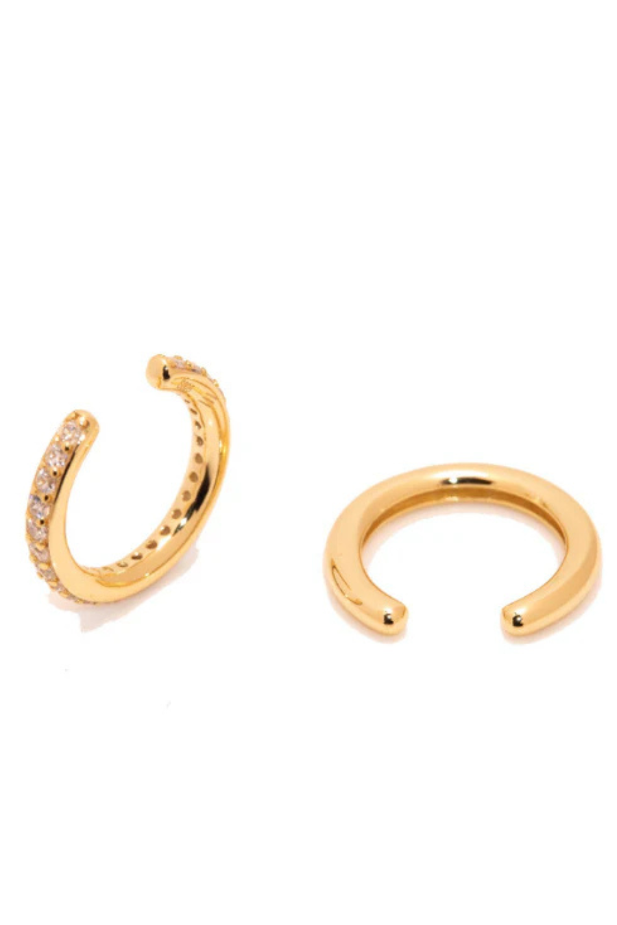 This Ear Cuff Set is the perfect way to add some fun earrings without the commitment of piercings. Wear them together or separately. Each set comes with (1) solid ear cuff and (1) CZ stone ear cuff.