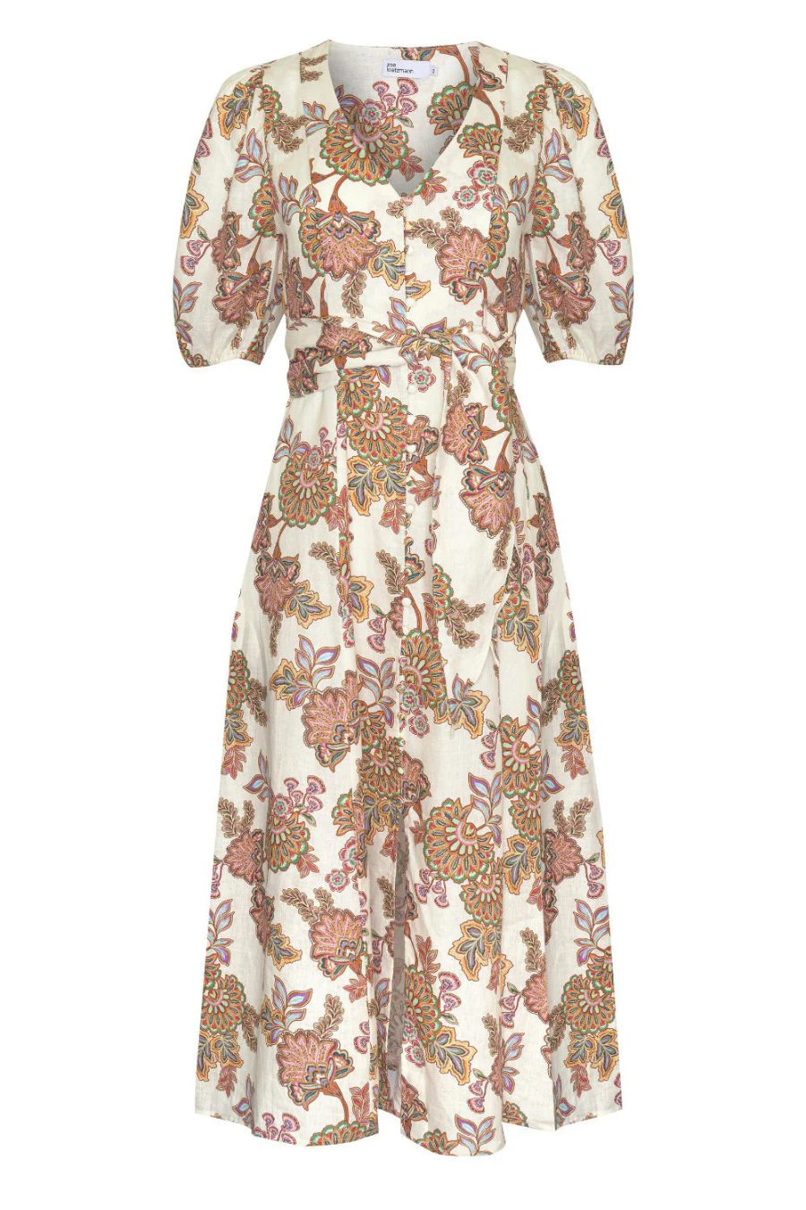 The ebb is the quintessential choice for vacation dressing, blending enduring appeal with chic vacation style. A flattering v-neck and covered buttons leads into a fit and flare silhouette.