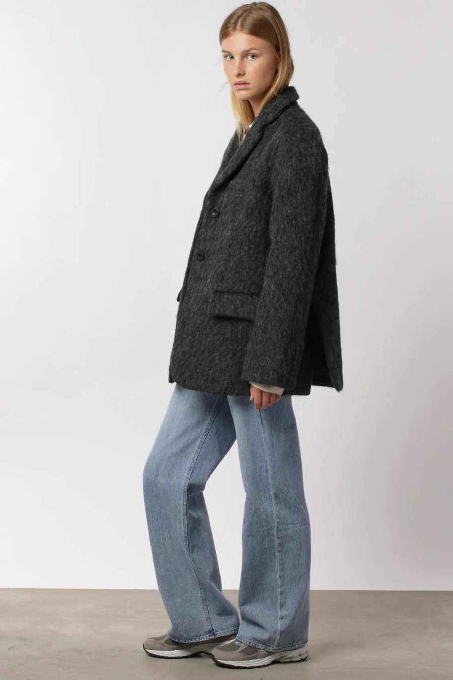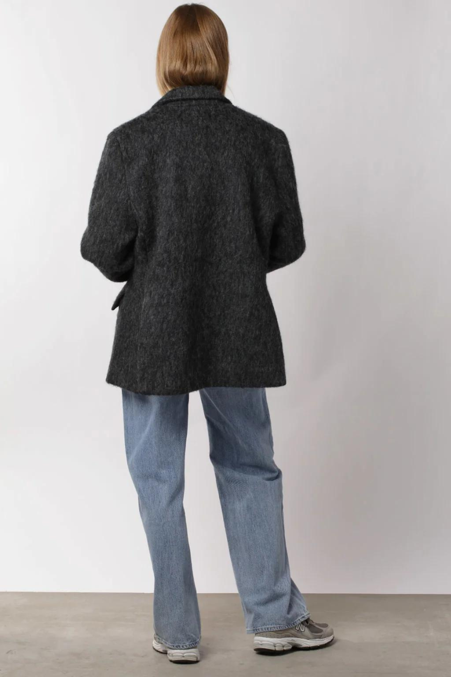 The Emily is a relaxed fit blazer cut from mohair wool. It is designed with a thin lining, sharp cut collars, button closure and two hidden front pockets.