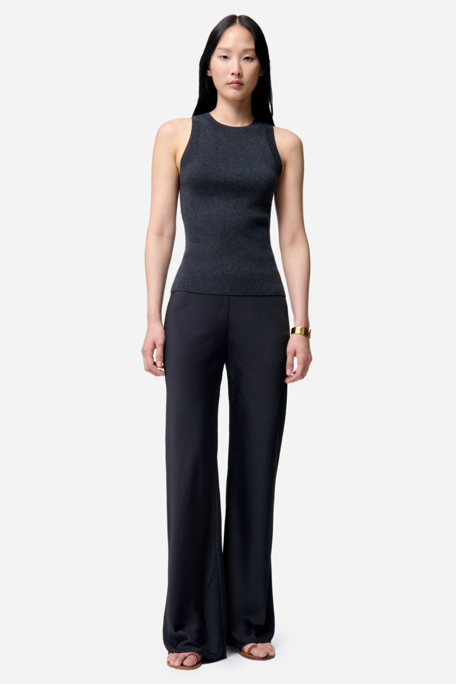The Essaid pants combine elegance and comfort with their loose fit and silky drape. The lightweight fabric allows for airy movement, while the high waist ensures a perfect fit. Versatile and sophisticated, they can be paired with the Ezai top for a structured silhouette or with a flowing blouse for a bohemian look. A must-have piece for a chic and modern style.