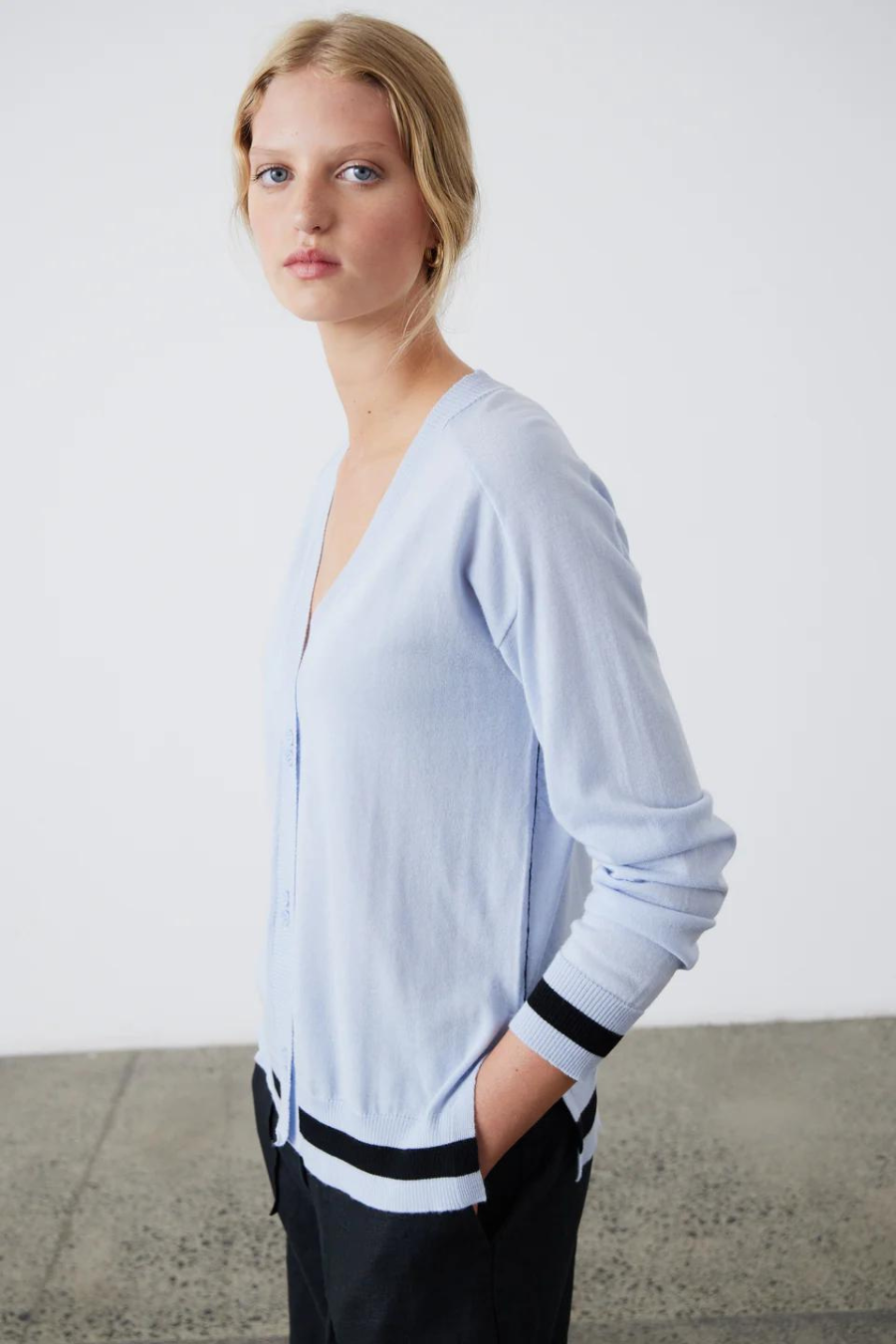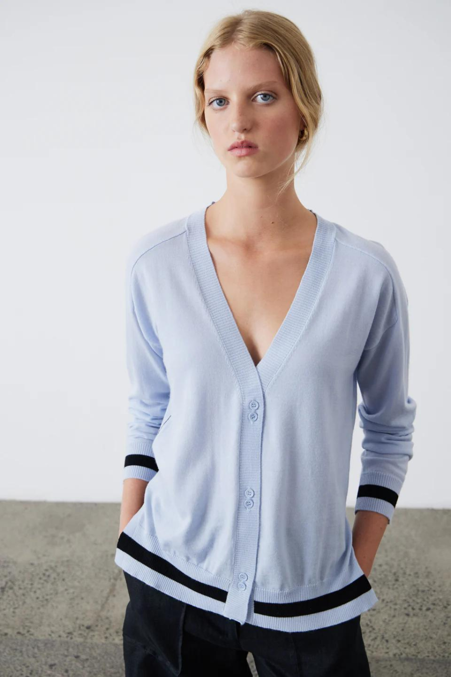 The Essie Cardigan - Dusky Blue is made of superfine merino for versatile wear. With side splits for fit and double buttons for detail, it has a preppy style.