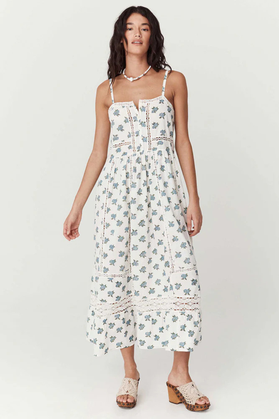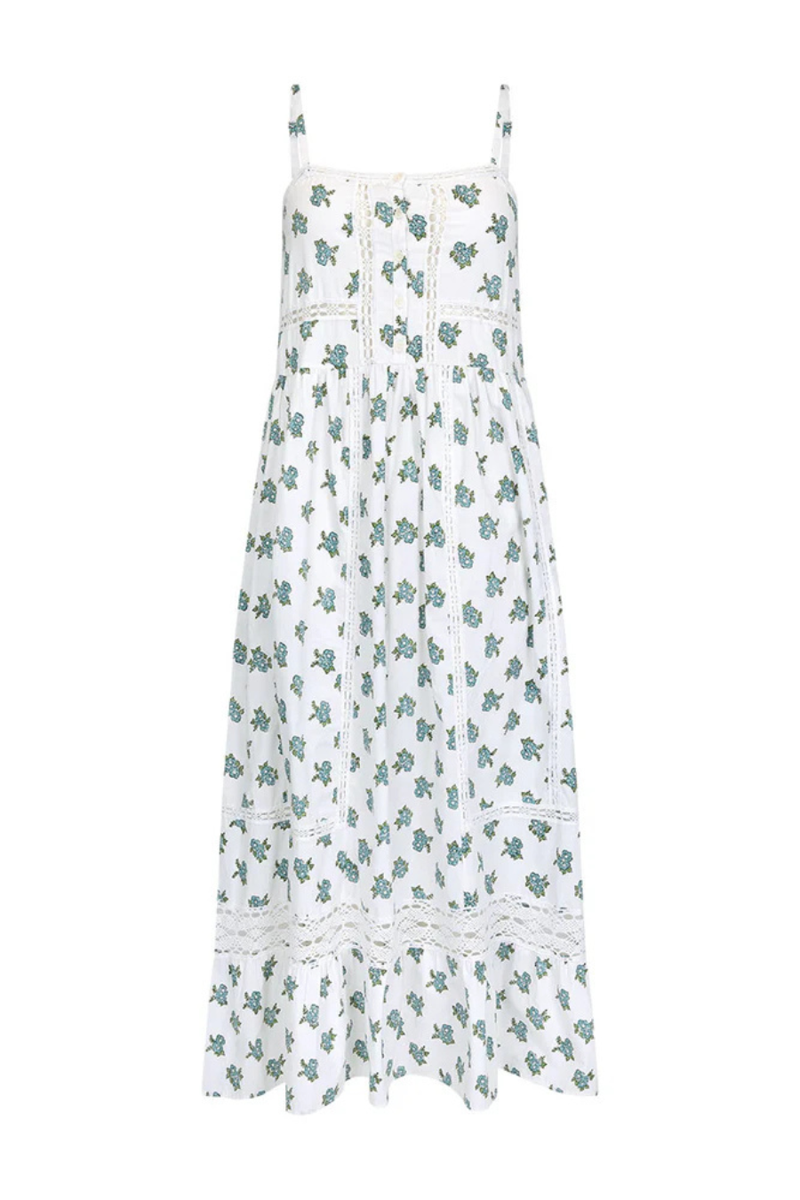 Our Fable Block Printed Strappy Sundress in Wild Poppy is a story we are proud to introduce where hand block printing has been used for the first time at Spell. Stunning in detail and craftsmanship, our strappy features lace inserted trims throughout, vintage inspired buttons and a high waistline that then falls into a feminine, floaty skirt. A square back and adjustable straps make this piece an elegant throw on style. Crafted from organic cotton poplin, it’s a sundress that feels like a rare vintage find, perfect for carefree sundrenched days or styled with layers for cooler evenings.