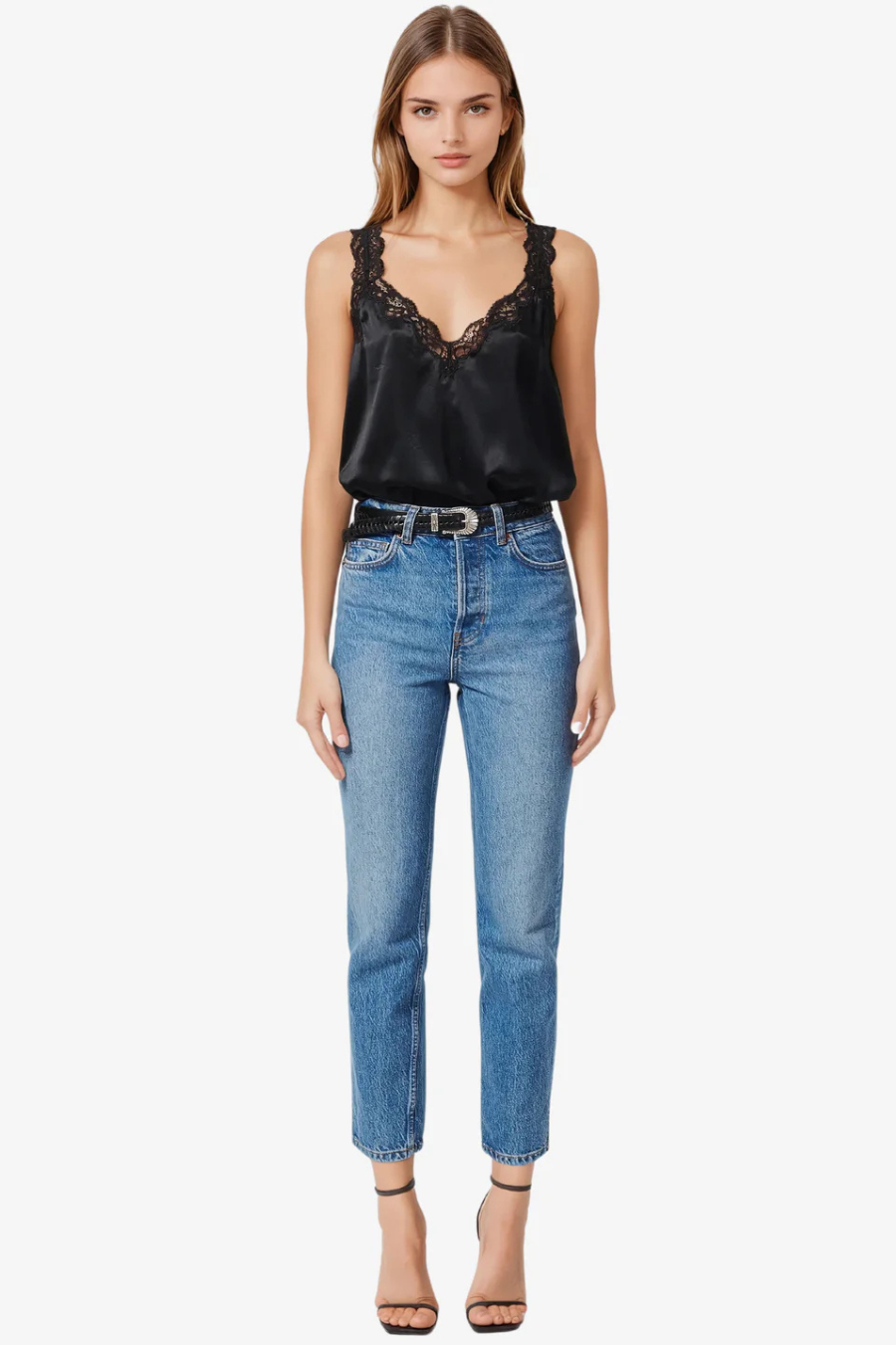 The Fernanda is going to be the newest additional to your wardrobe. It features a "V" neck with sheer embroidery edge lace, which continues to the straps. It is bra-friendly, unlined and has slits at the side seams. This cami is versatile and can easily go from day to night.