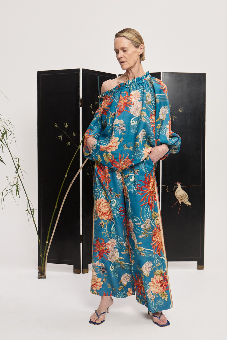 FLETCHER TOP Effortlessly relaxed off-the-shoulder design Featuring a gathered straight neckline and voluminous balloon sleeves. Style with the matching Fletcher Pant.