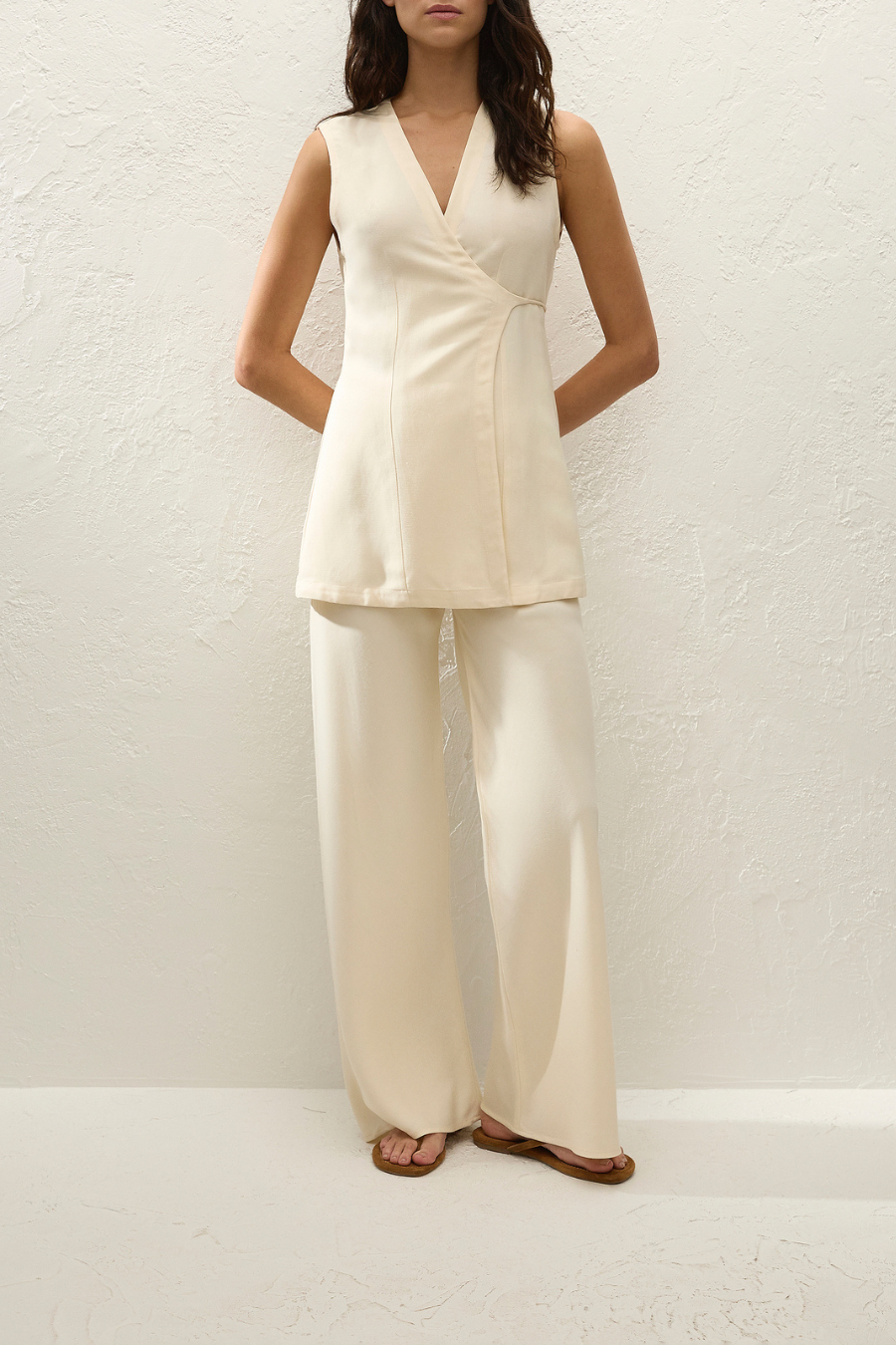 A relaxed yet elevated pant designed from an ultra soft blend of viscose, rayon and a signature 100% European Flax® linen fabrication. Featuring an elasticated waist for a comfortable fit, they fall into a straight leg, long in length. Style under the Florine Blazer for a seasonal approach to suiting.