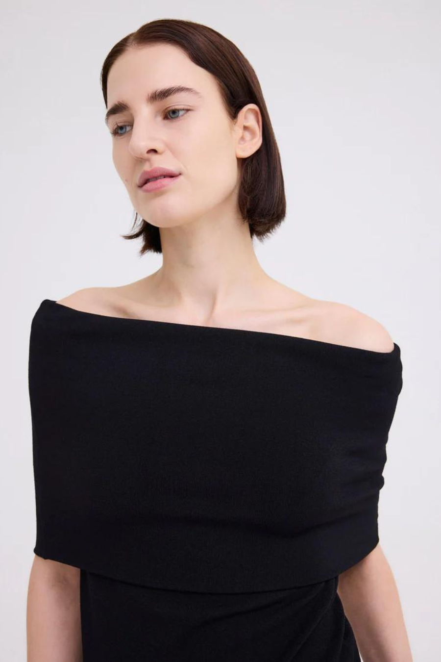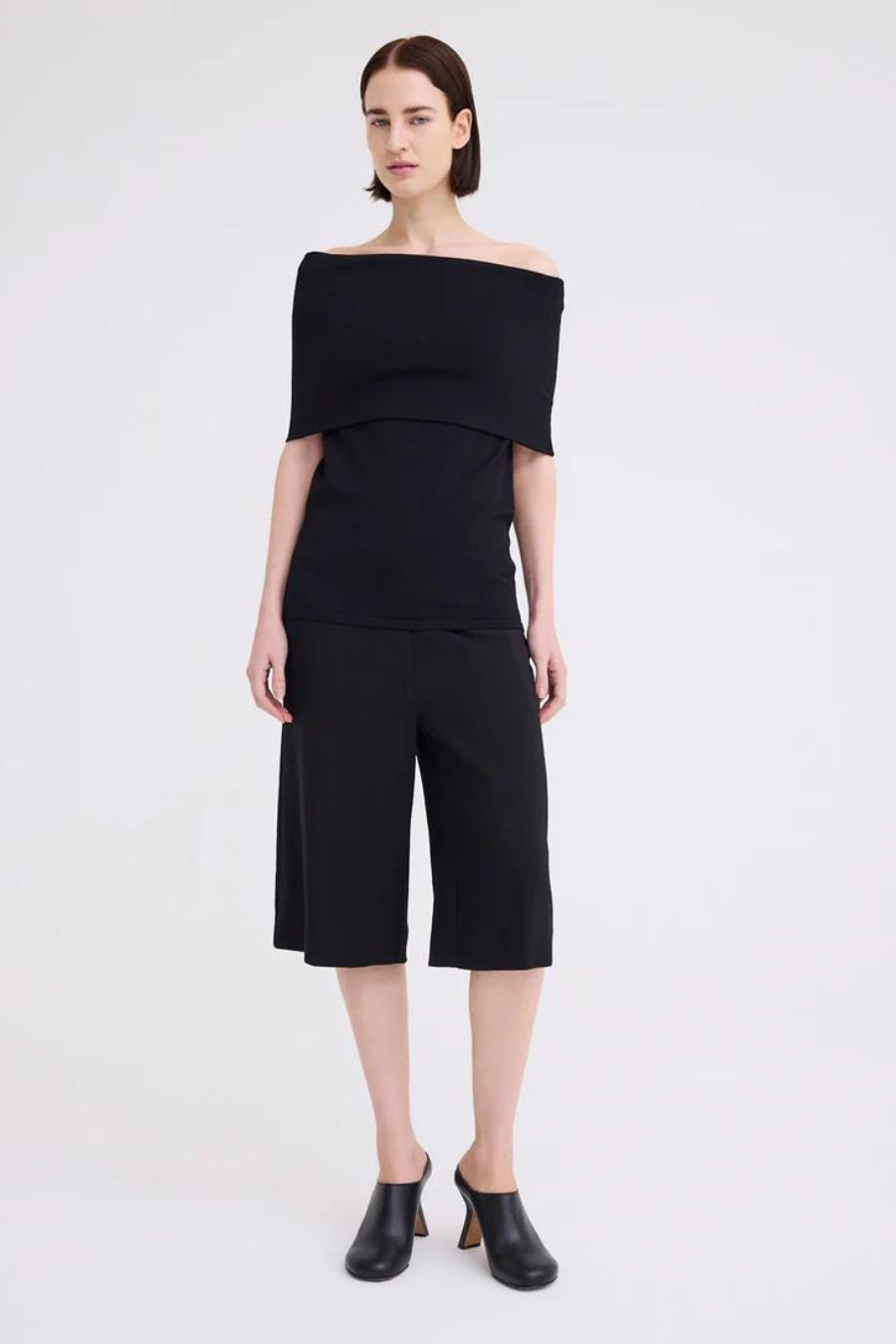 A elegant top with timeless appeal. This timeless knit top features slim fit throughout the body paired with a wide foldover neckline detail that sits along the decolletage to create a distinctly sophisticated shape. With a slight stretch yet subtle structure this style has a beautifully refined shape and an elegant sensibility.