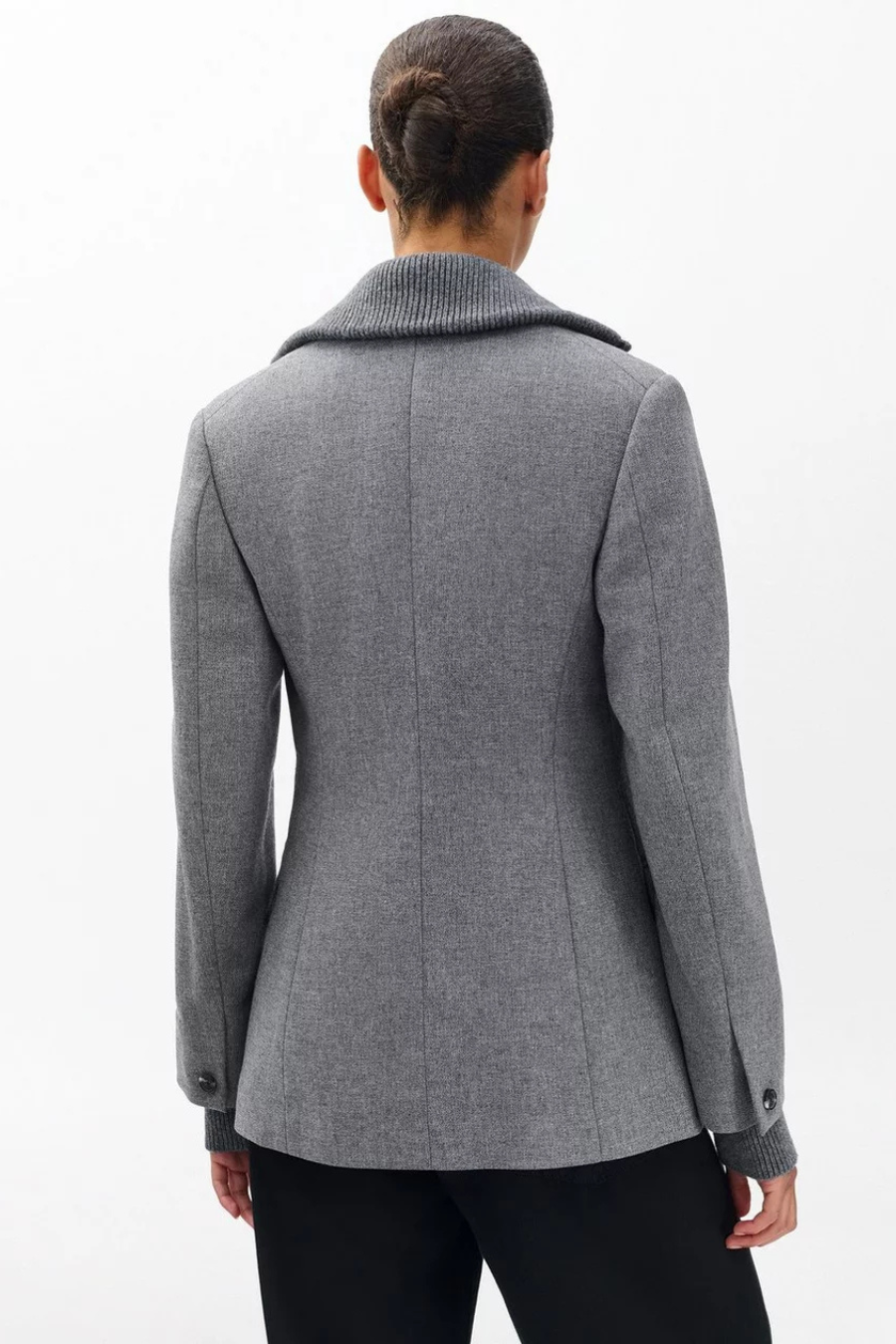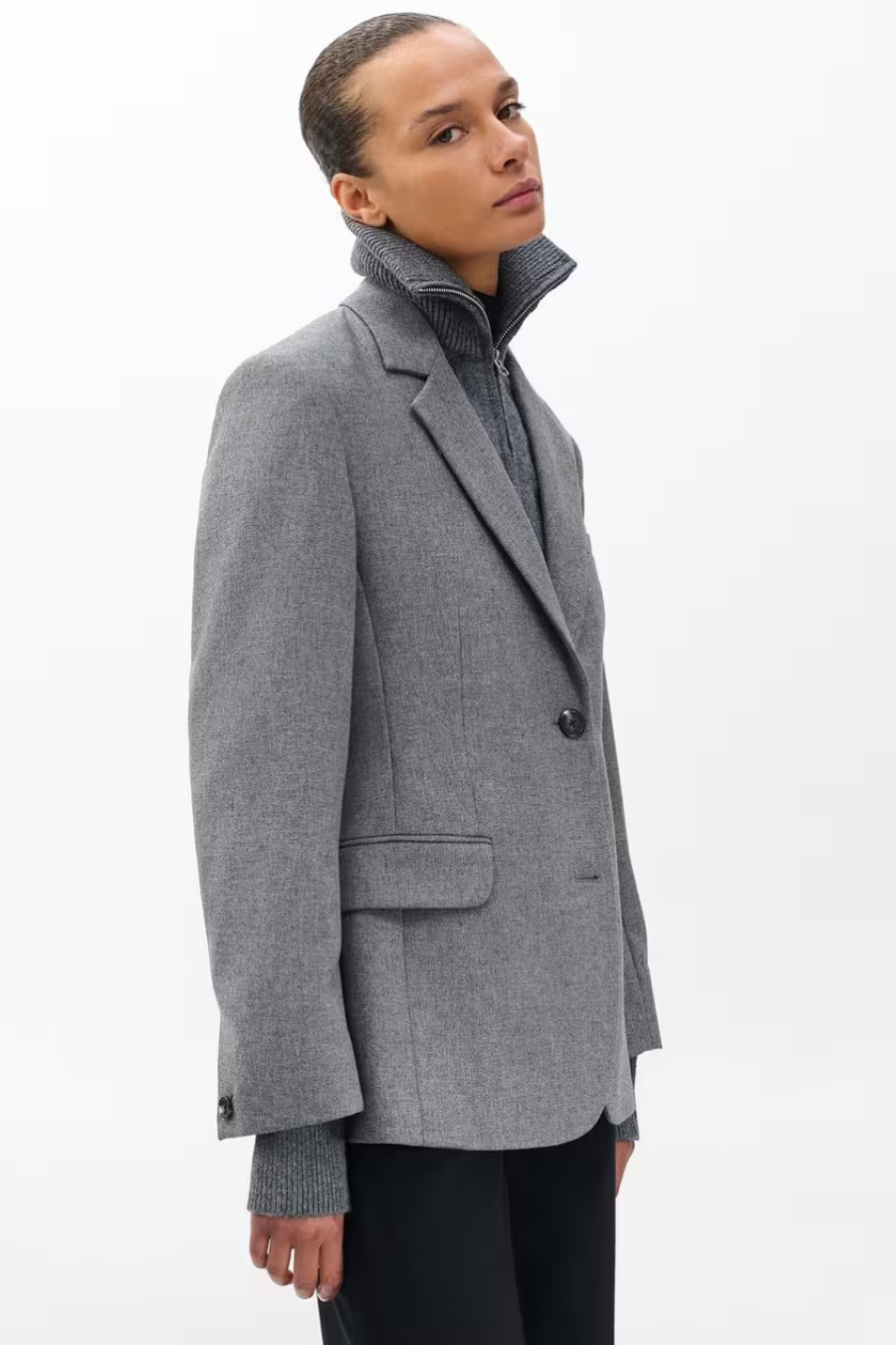 Suit yourself. This two-button blazer has a cinched waist and falls below the hip. Crafted from a wool blend with a satin lining, it pairs a soft feel with a structured look. An accompanying sweater inlay can be zipped in or out to whenever you want to create a cool layered look.