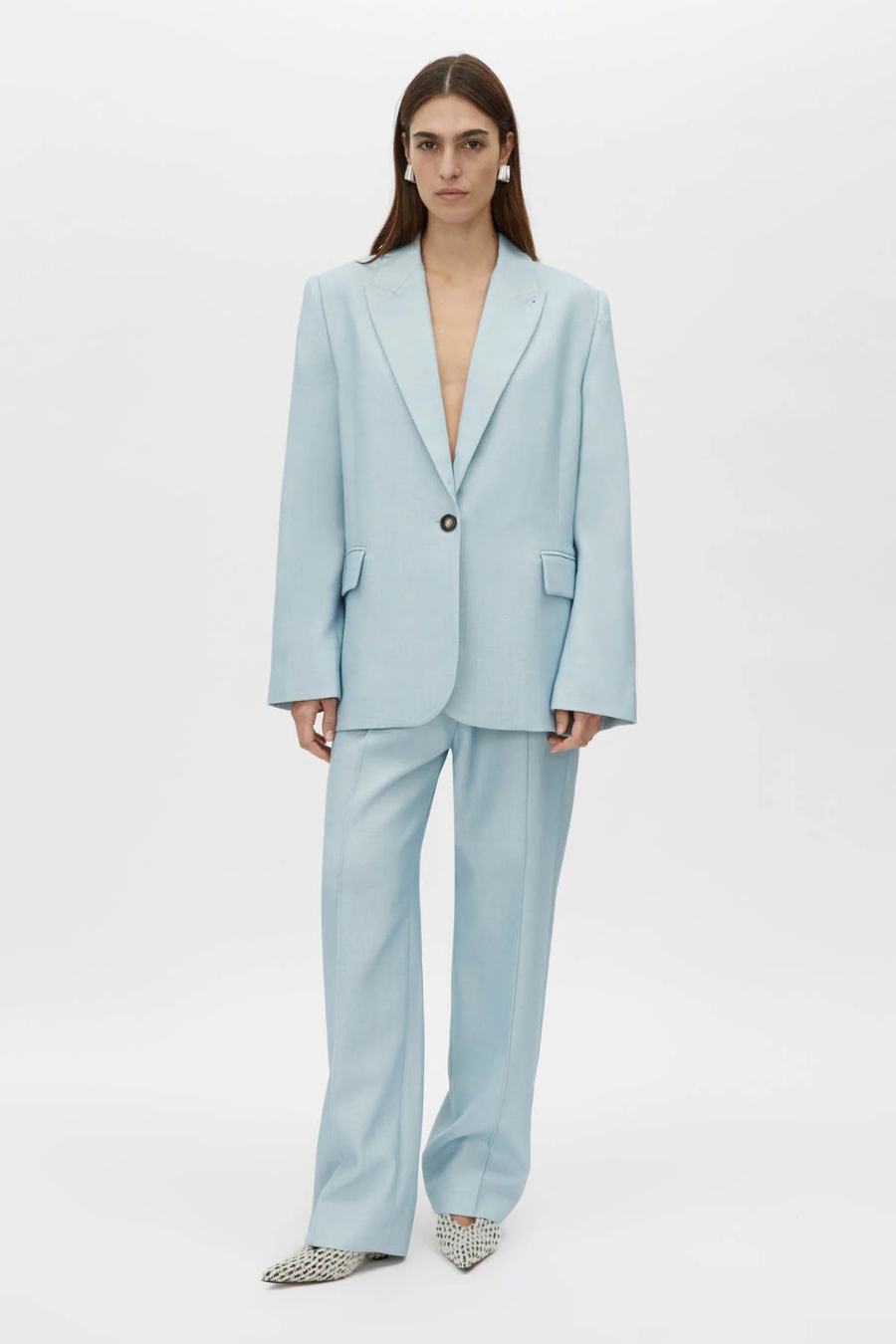 The Gehry Blazer is a refined single-breasted jacket crafted from premium Australian Wool, designed with a specialty front button and four kissing, branded buttons on each sleeve. Featuring welt pockets, rounded front hem corners, and a peak lapel, this versatile piece adds sophistication to any wardrobe. With an undercollar felt for a modern touch, it blends practicality with effortless style.