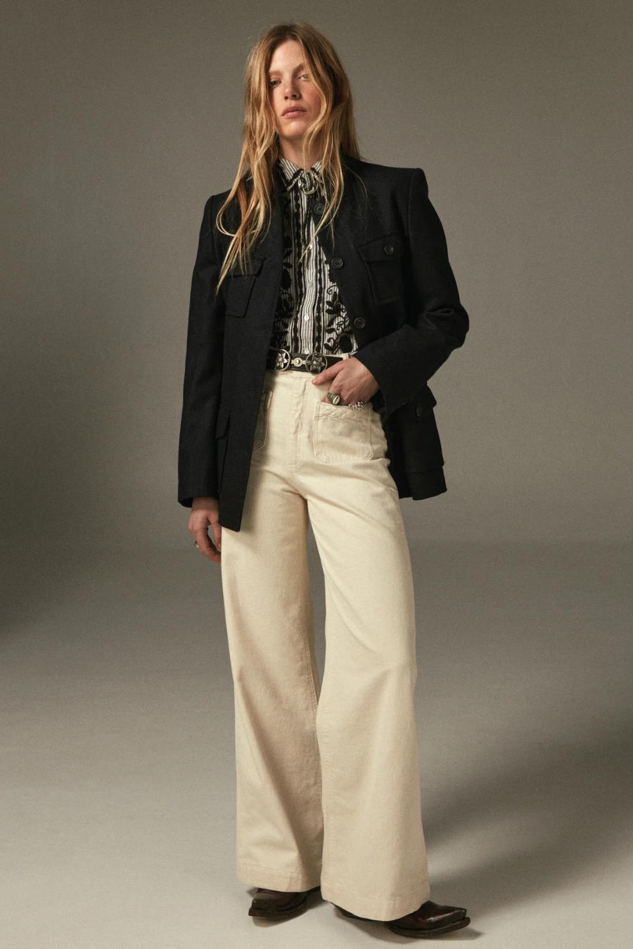 High-waisted with a straight, wide leg and front pockets, the Hamlet Pants in Maxton Ecru balance structure with ease. A silhouette that nods to classic tailoring while staying relaxed enough for everyday wear.