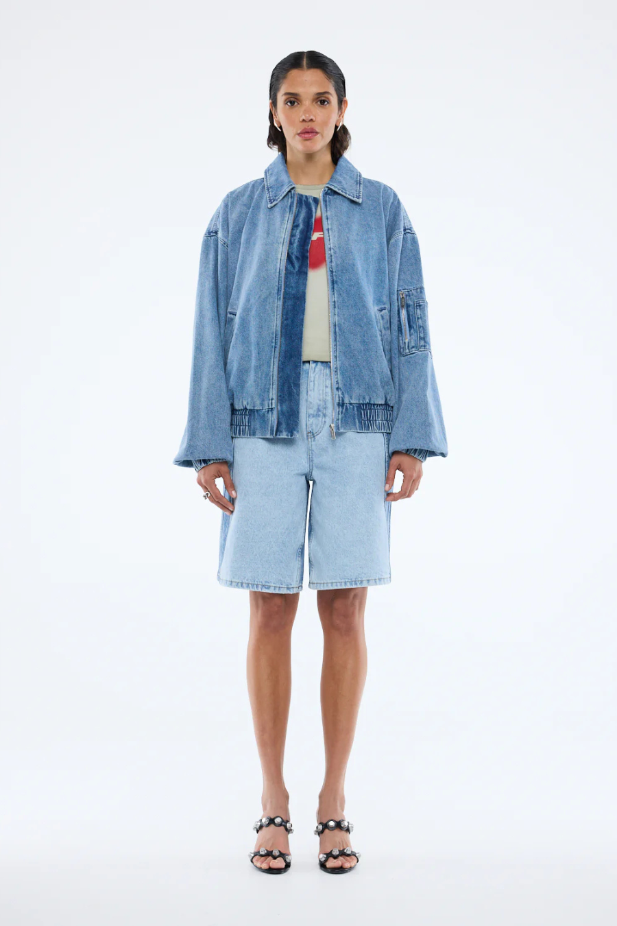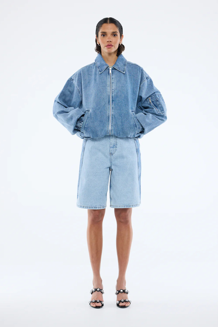 Harlow Denim Bomber Mid Wash Blue