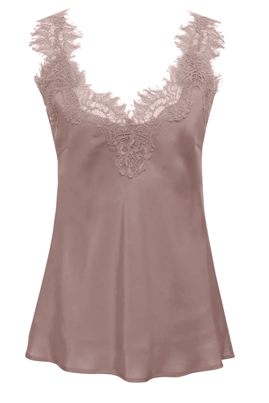 Harper Silk Cami with V neck, and Coco Lace trim. Cut on bias for a flattering fit. Finished with hand cut lace detail on the waist. Perfect for adding a touch of elegance to any outfit.