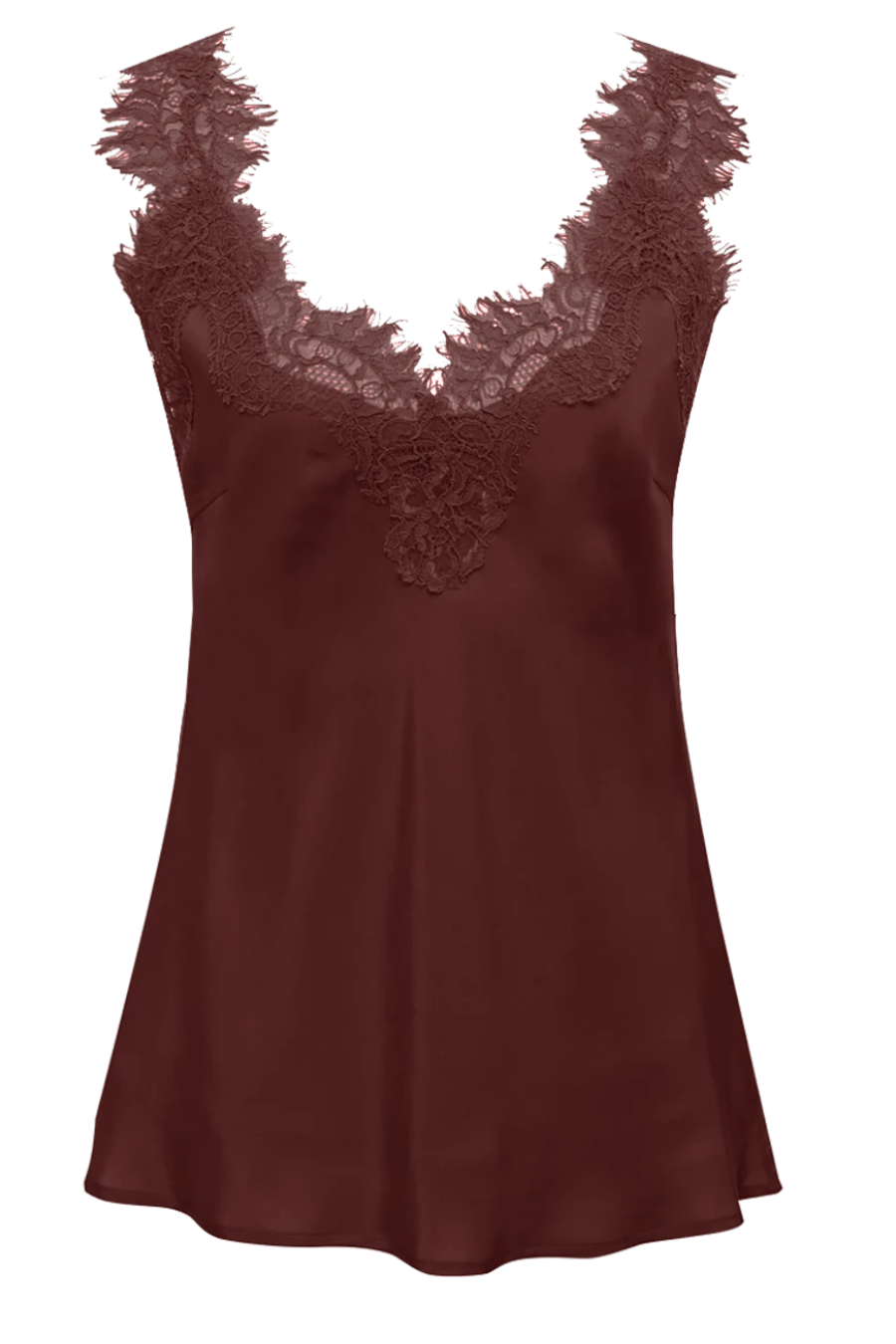Harper Silk Cami with V neck, and Coco Lace trim. Cut on bias for a flattering fit. Finished with hand cut lace detail on the waist. Perfect for adding a touch of elegance to any outfit.