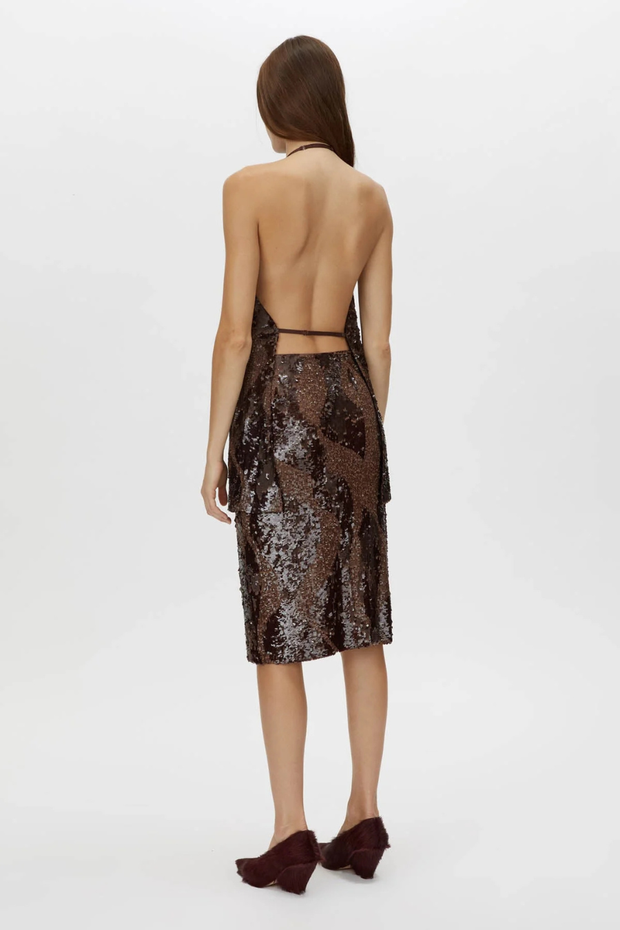 The Hedione Skirt is a striking sequin midi designed to sit comfortably at the waist, creating a flattering silhouette. Featuring a side seam invisible zip closure and a blind hem finish, this skirt has a seamless and polished look. Fully lined for added comfort, this skirt is the perfect addition to elevate any evening ensemble.