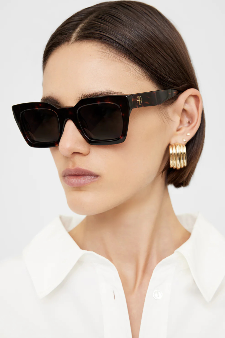 Featuring an oversized square frame and sleek dark tortoise hue, these sunnies channel vintage glamour for elevated everyday wear.