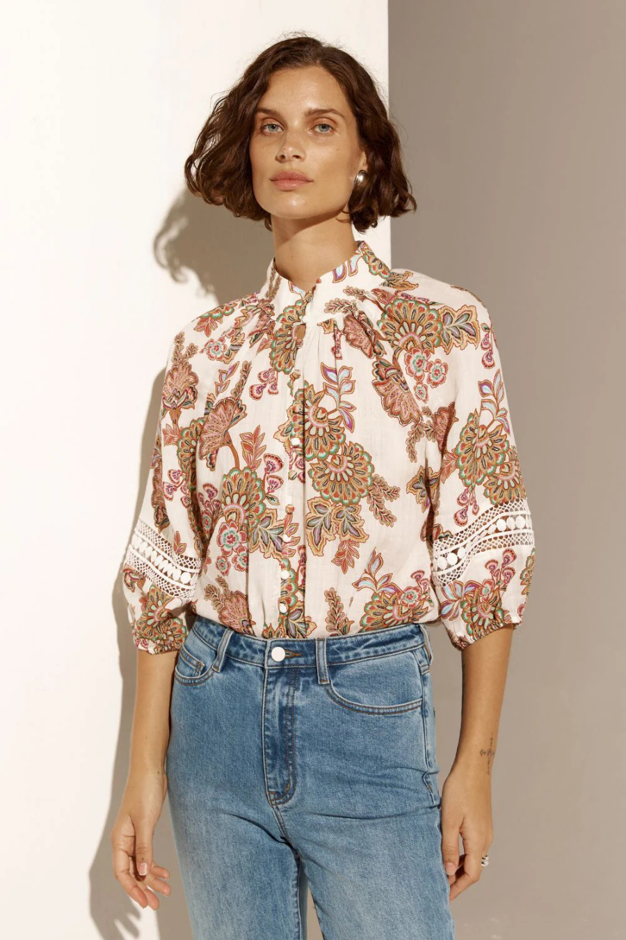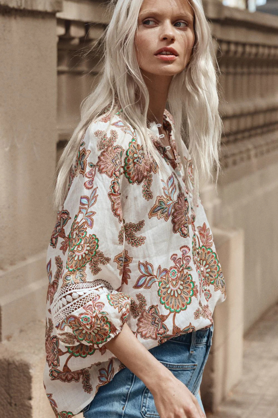 - lace detailing on the sleeve adds a feminine and chic element