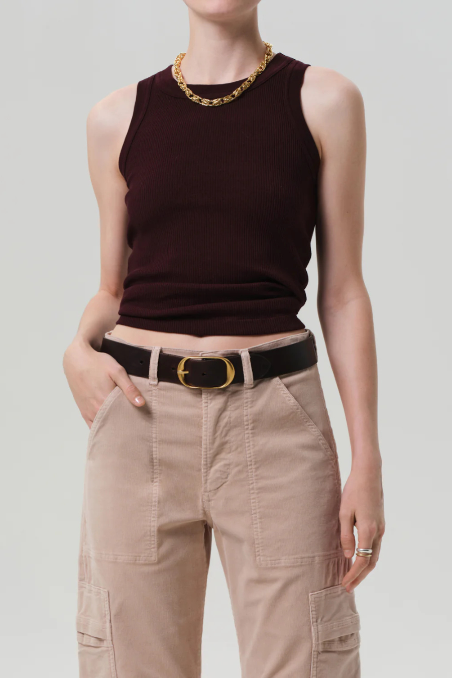 The Isabel Tank is a modern essential, cut in ultra-soft, supportive ribbed cotton with a close, flattering fit. Designed with a high neckline and clean finish, it’s ideal worn solo or layered under structured pieces. A polished base for elevated everyday styling.
