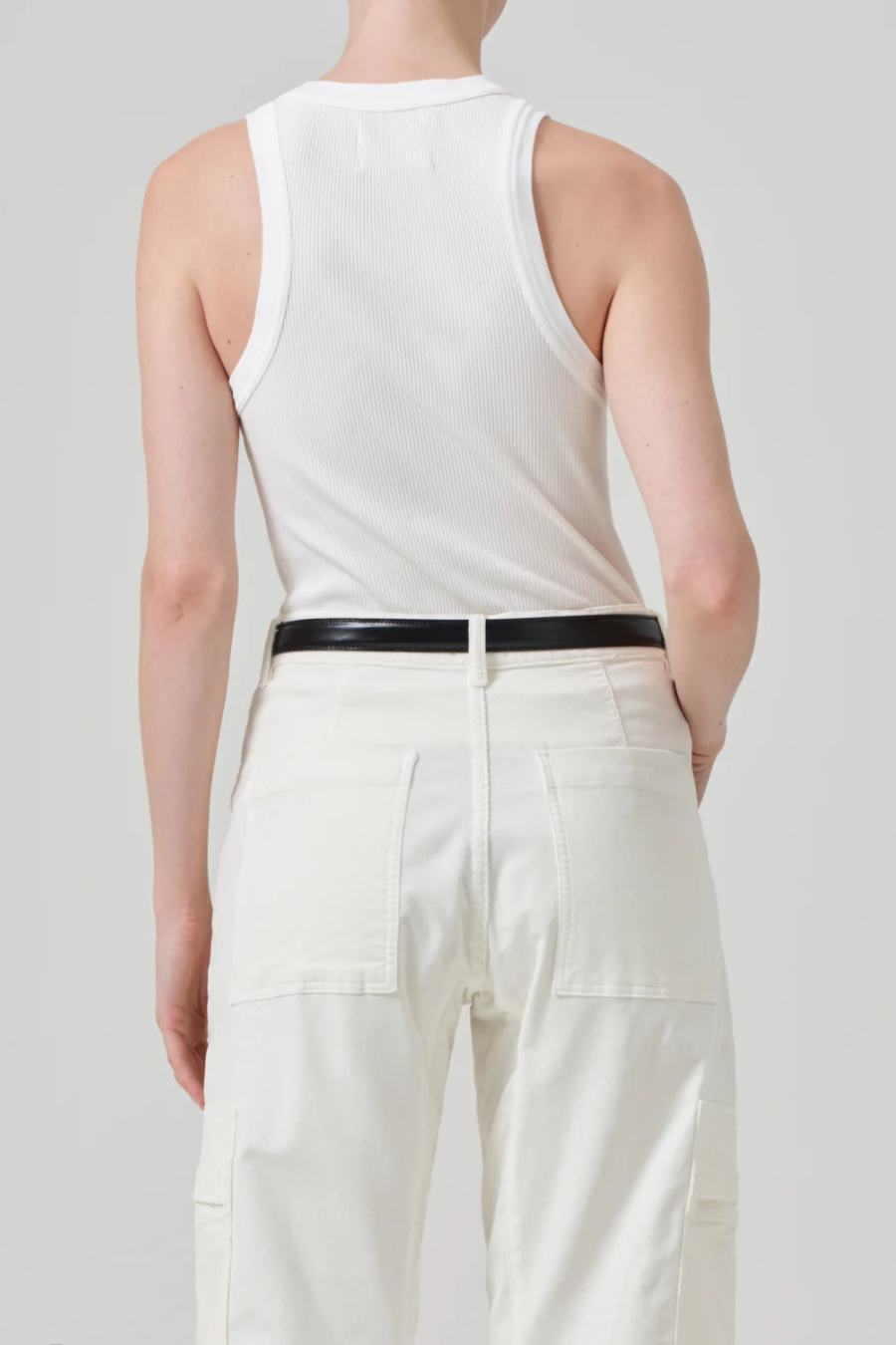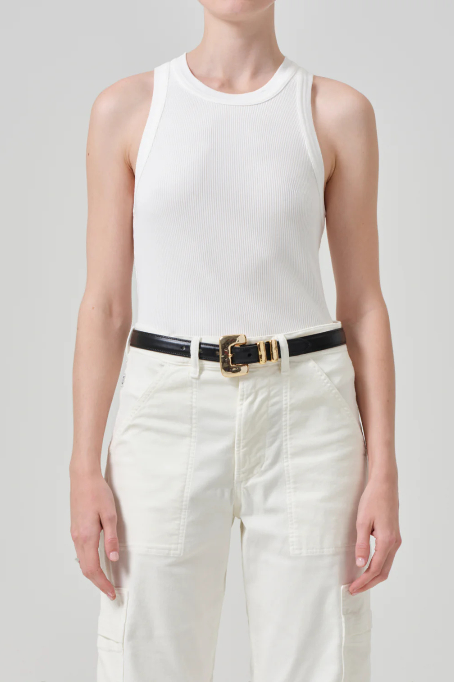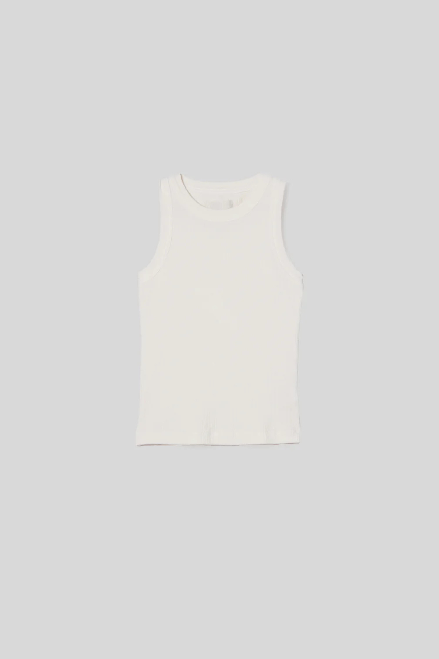 The Isabel Tank is a modern essential, cut in ultra-soft, supportive ribbed cotton with a close, flattering fit. Designed with a high neckline and clean finish, it’s ideal worn solo or layered under structured pieces. A polished base for elevated everyday styling.
