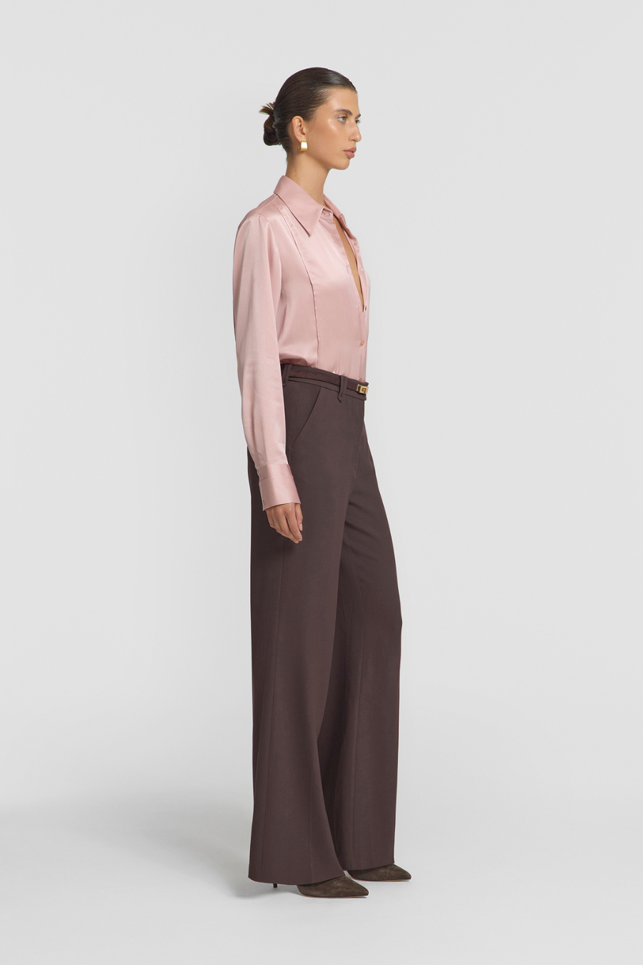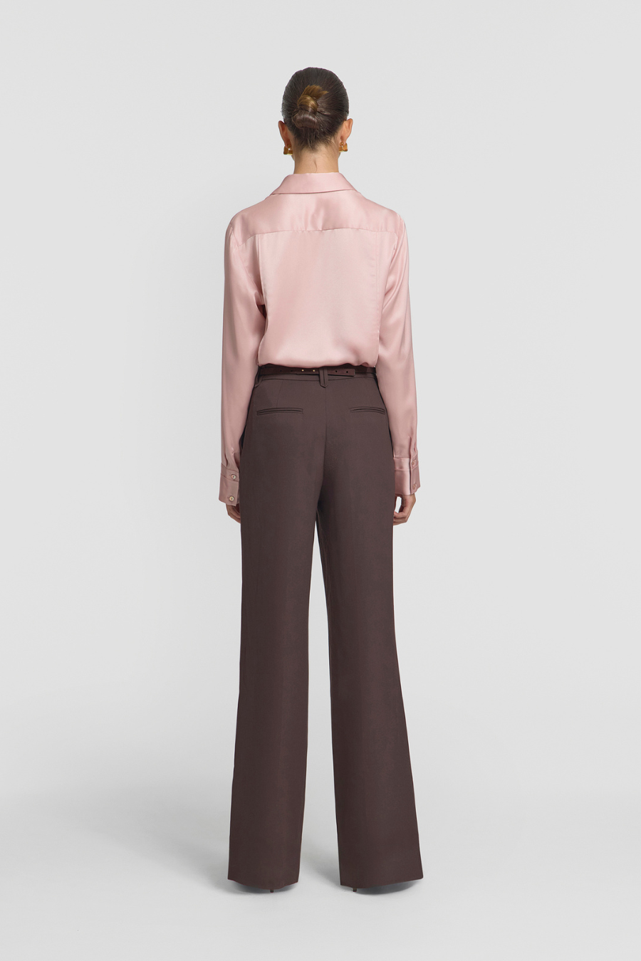 The Jackman Trouser from Viktoria & Woods combines sophisticated tailoring with a relaxed, contemporary fit. Crafted from a luxurious fabric in a rich cocoa tone, these trousers feature a flattering high waist, crisp pleats, and a tapered leg that creates a clean, sharp silhouette.