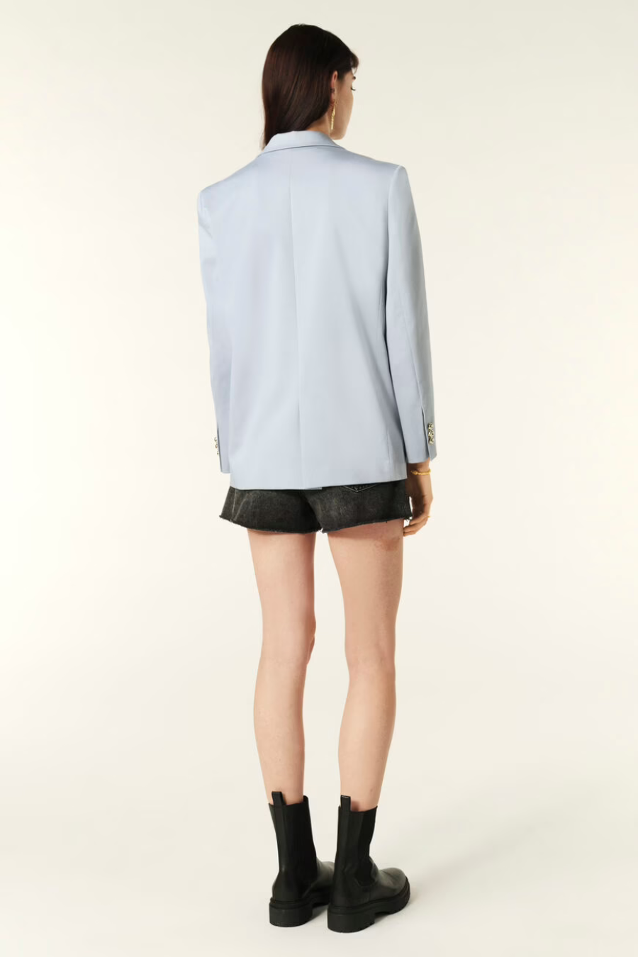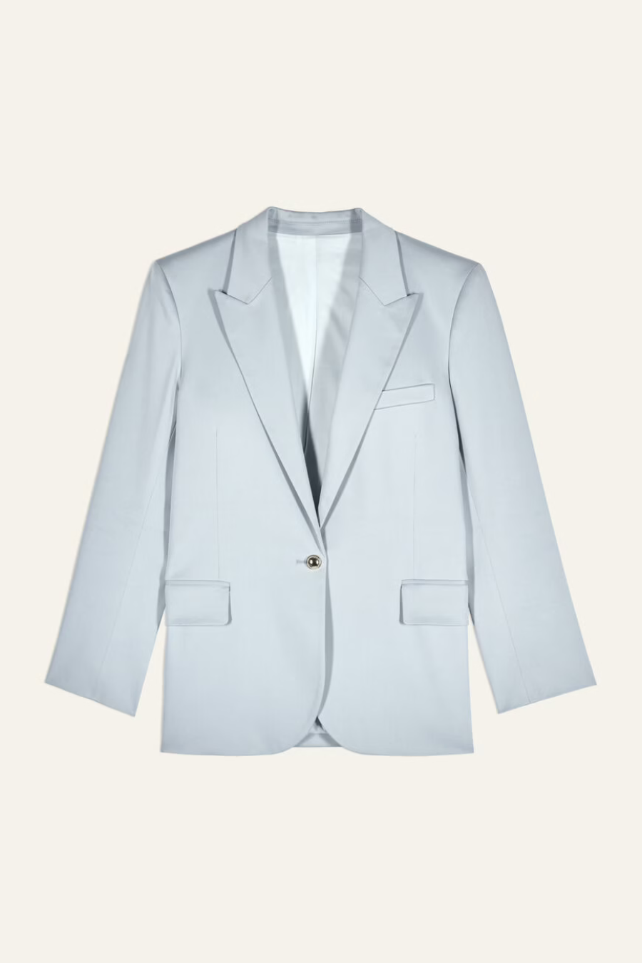 Stolen from the men's dressing room, the JANICE jacket adds an elegant touch to all our outfits. It has a wide fit, a collar with a pointed lapel and a gold-tone button fastening, which can also be found on the cuffs. Satin-finish cotton and structured shoulders draw inspiration from the 70s to create a chic, timeless silhouette. Wear it as a co-ord with trousers for a spring wedding or go for the total look with a shift dress.