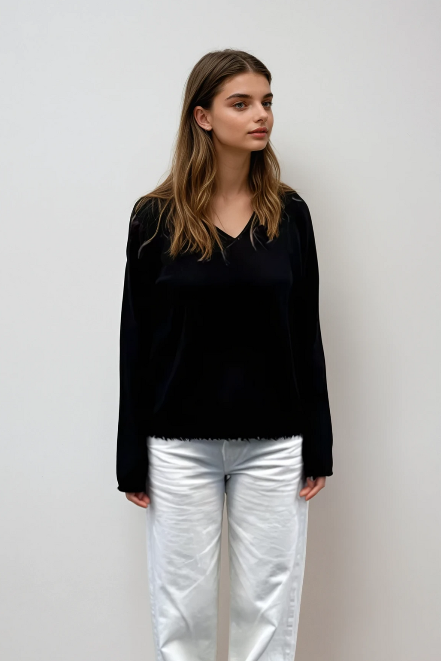 Soft, warm, and effortlessly stylish — this V-neck sweater is made from 100% cashmere for a luxurious feel you'll reach for again and again. The flattering V-neckline and relaxed fit make it easy to wear on its own or layered.