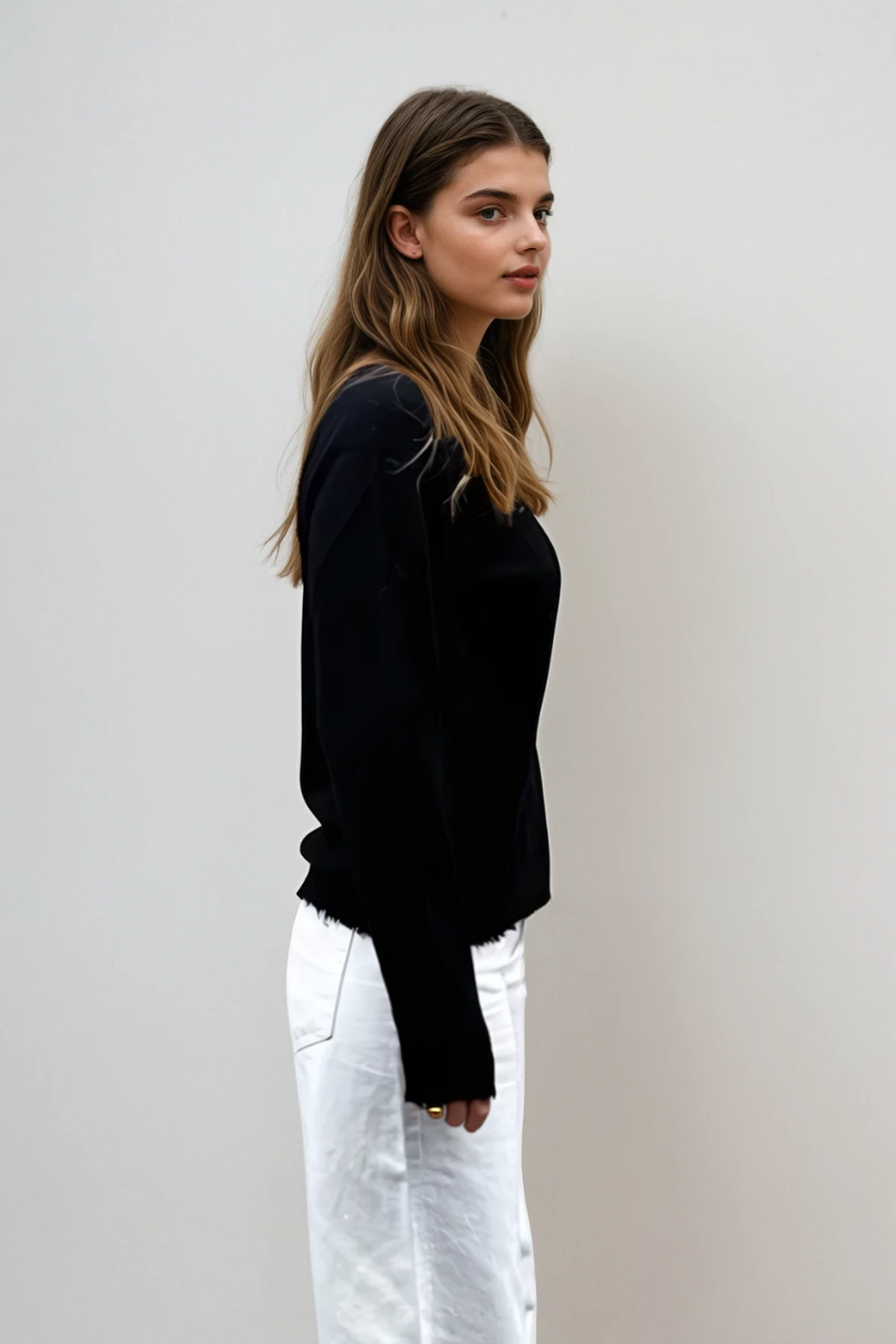 Finished with a distressed neckline, it's a timeless piece that adds a touch of elegance to any outfit. Available in classic and seasonal colors to suit every style.