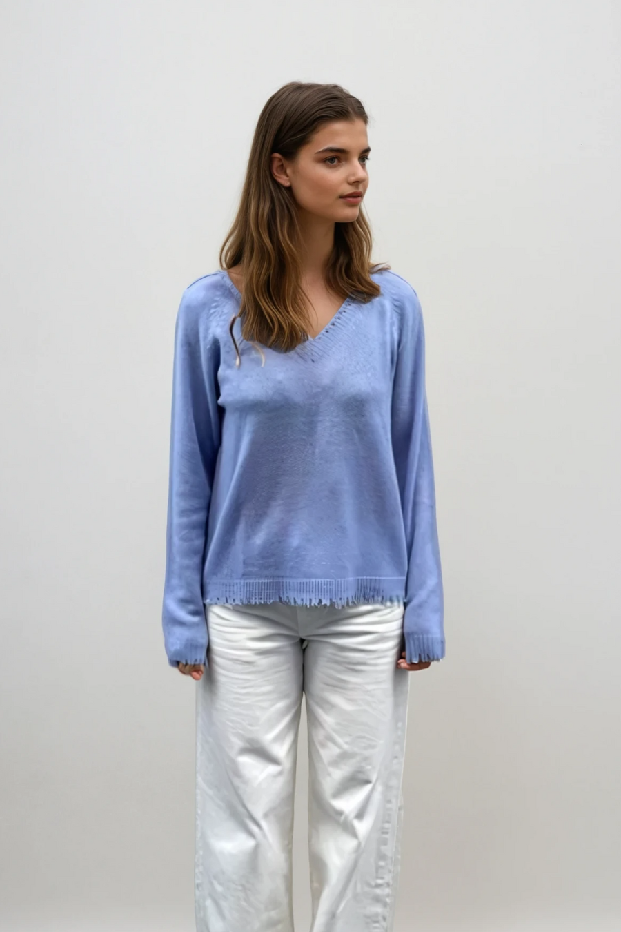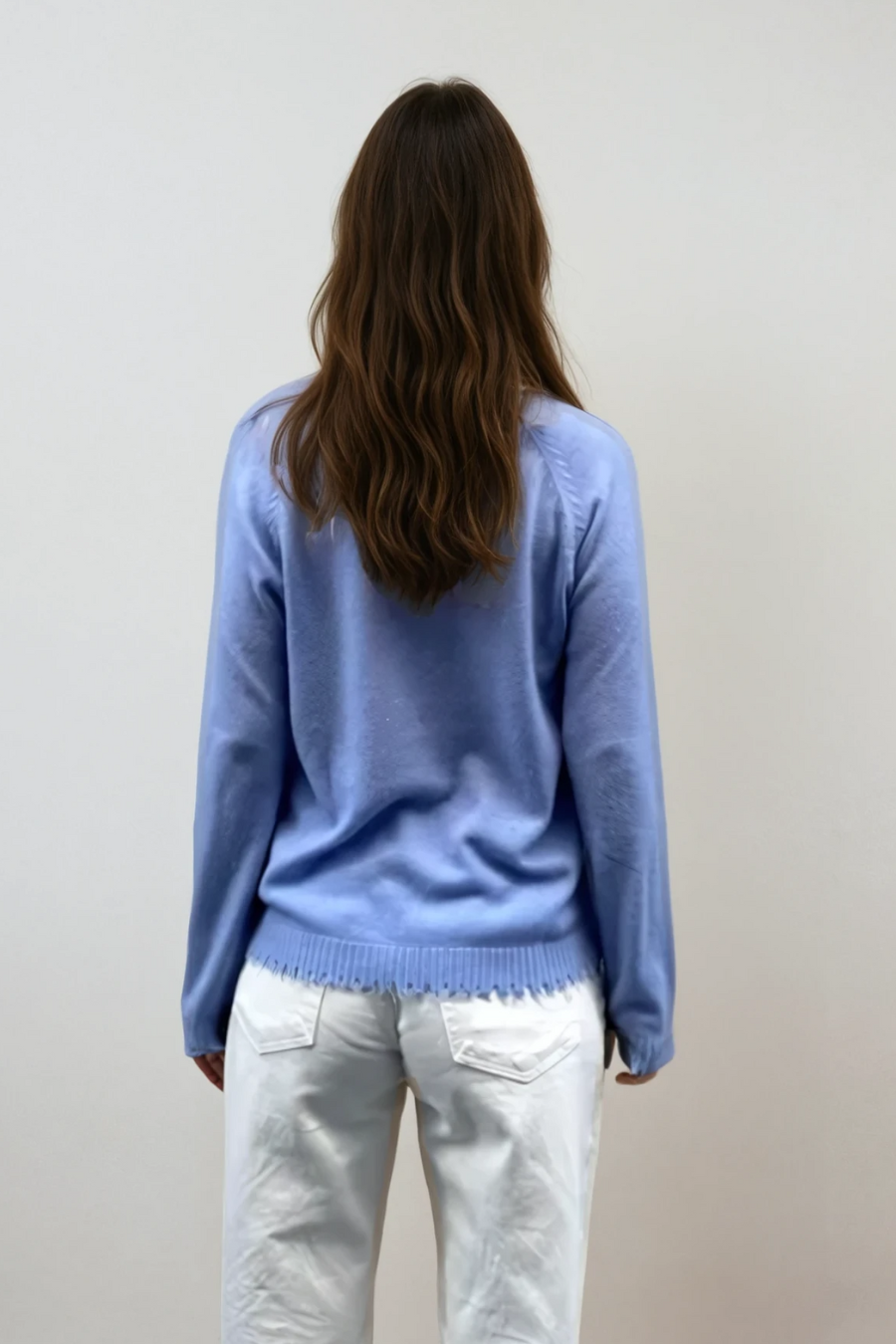 Finished with a distressed neckline, it's a timeless piece that adds a touch of elegance to any outfit. Available in classic and seasonal colors to suit every style.