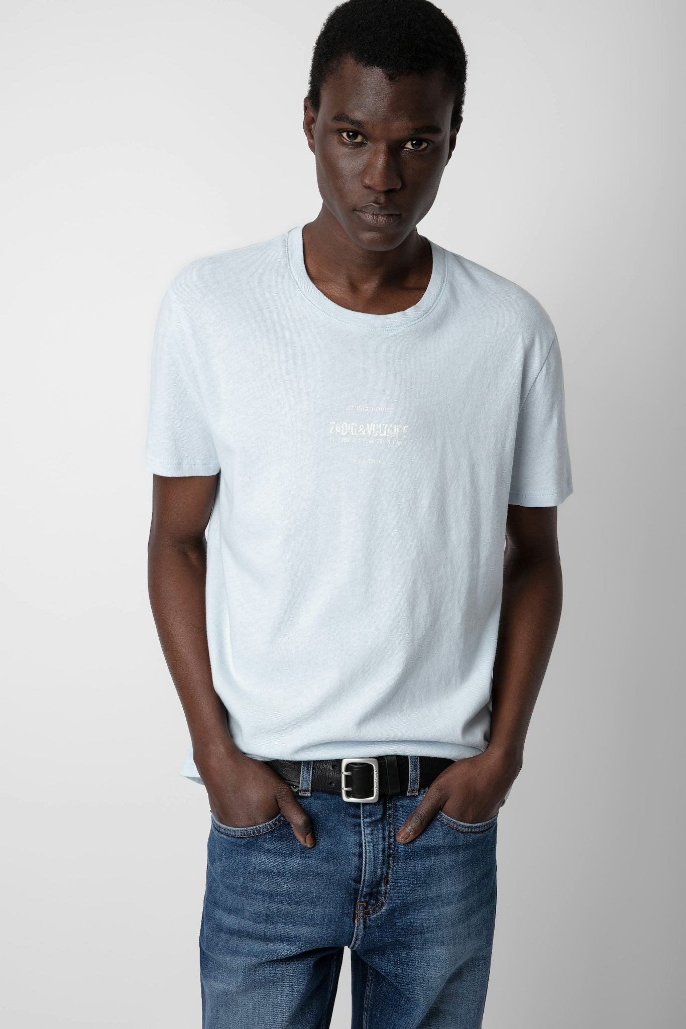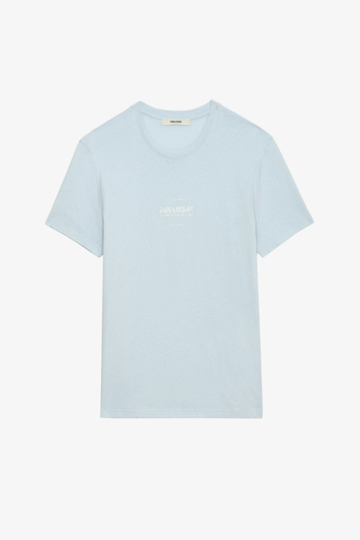 Mens washed linen blend T-shirt with Studio Homme crest print and short sleeves.