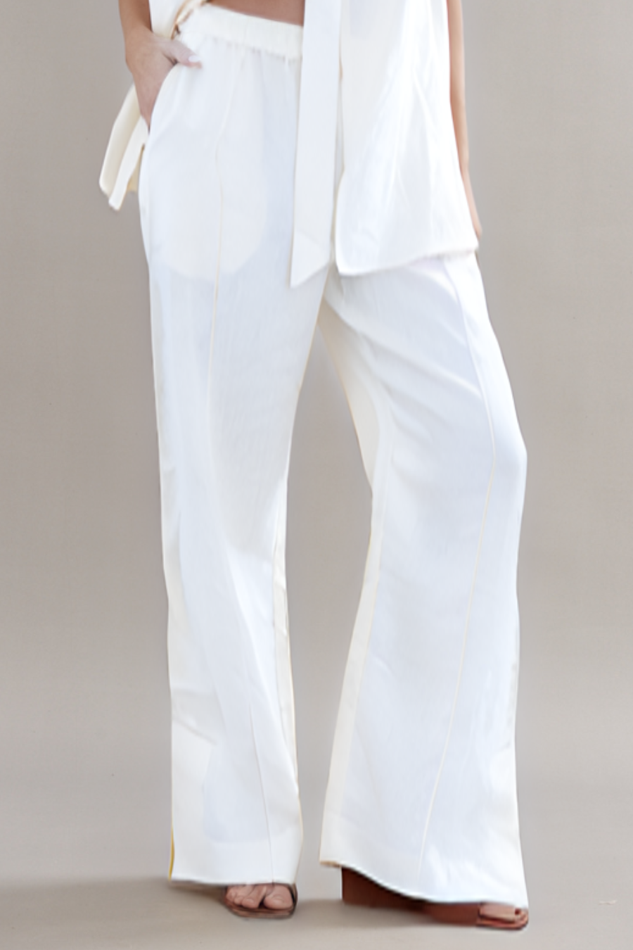 The pant you'll find yourself wearing on repeat. Featuring an elasticated waist, split detailing and side pockets. Pair with one of its matching White Linen companions for a summer staple look.