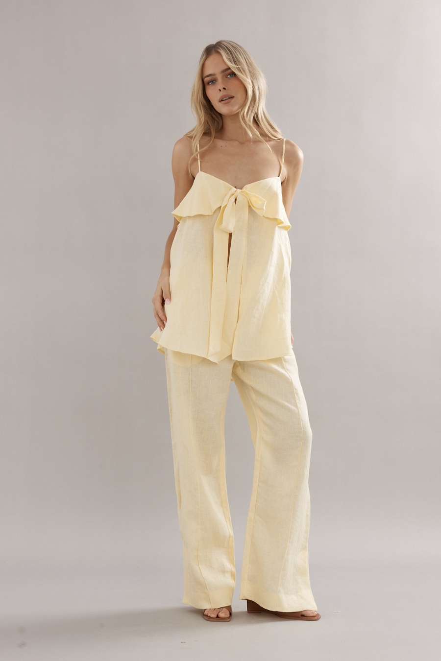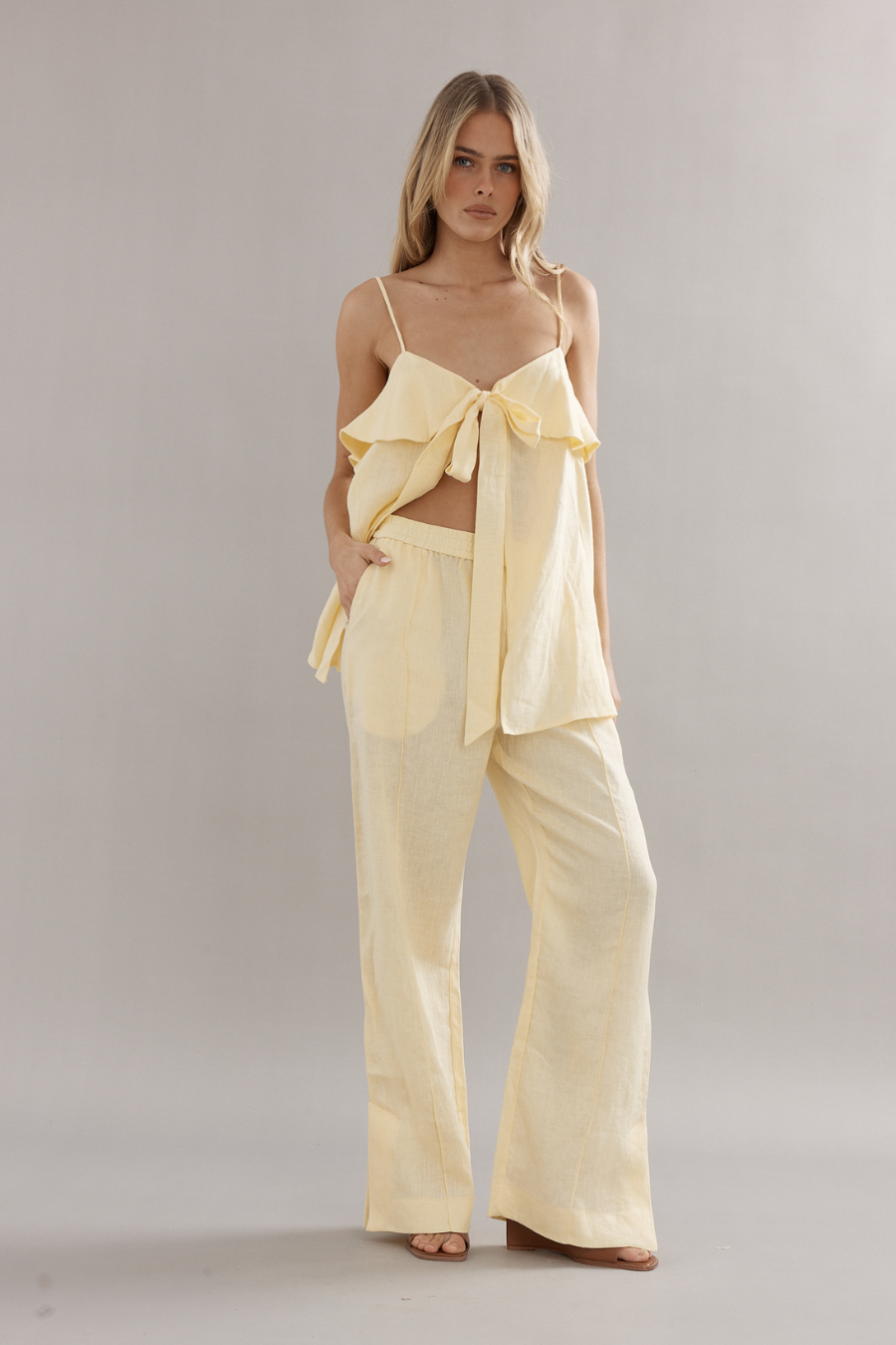 The pant you'll find yourself wearing on repeat. Featuring an elasticated waist, split detailing and side pockets. Pair with one of its matching White Linen companions for a summer staple look.