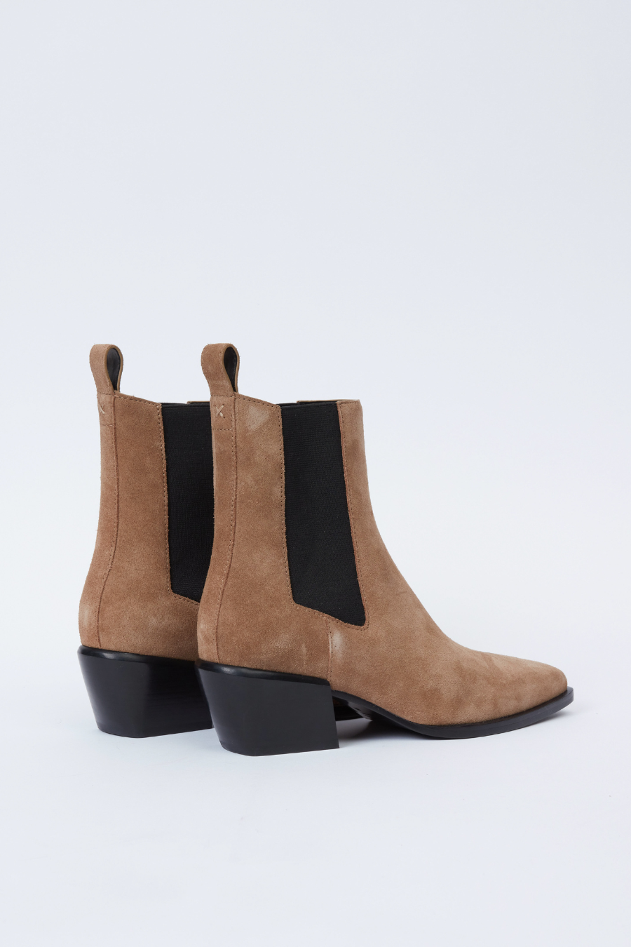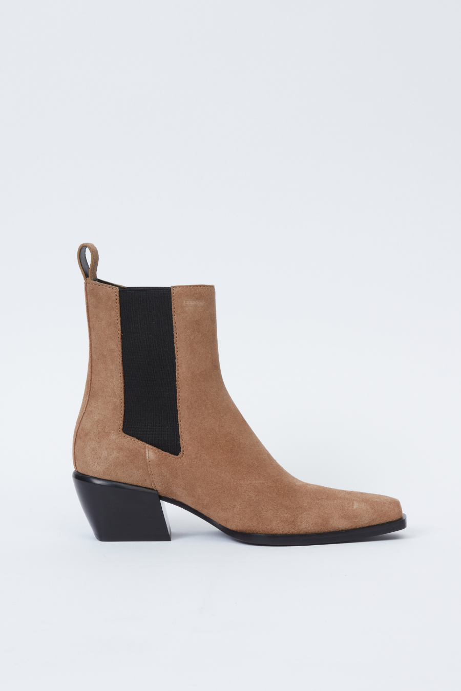 The Joni. A Chelsea boot designed to be worn with any pant leg shape from day to night. Our ankle boot is crafted in suede with a squared-off pointed toe and features elasticized gores and back pull tabs. Crafted with dual-density antimicrobial foam insoles: OrthoLite® Lazy-Hybrid™ for custom-fit comfort, and OrthoLite® Recycled for stability and support.