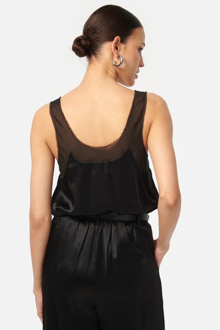 SCOOP NECK CAMISOLE WITH SHEER CHIFFON PANEL ALONG NECKLINE