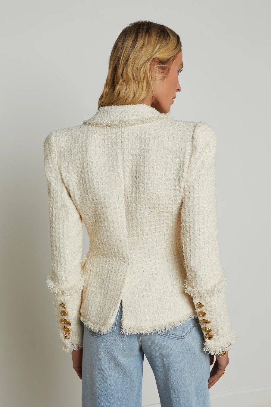 The Kaisley offers a flattering cinched fit tailored from waffle tweed and finished with gold and silver novelty buttons along the cuffs.