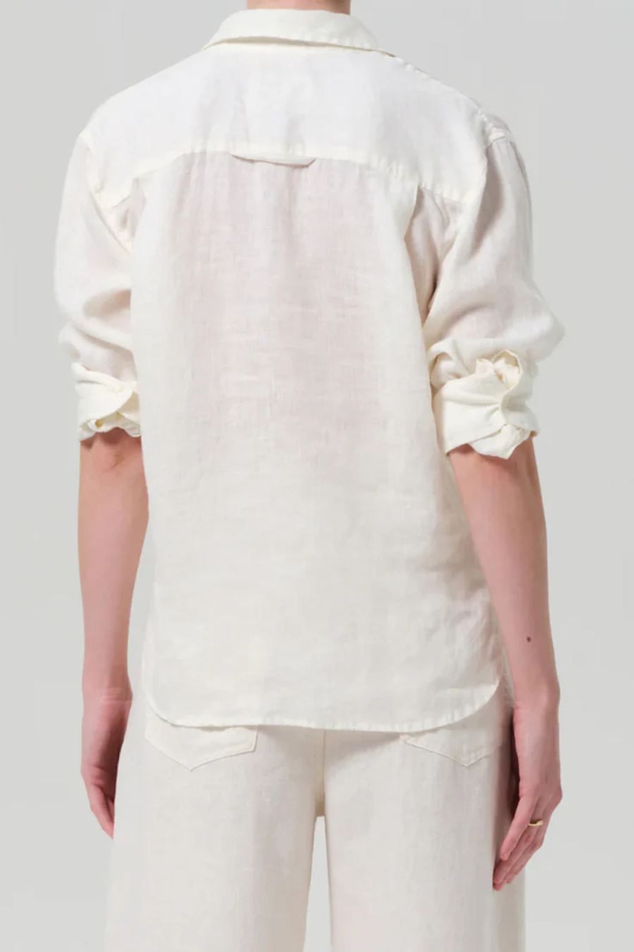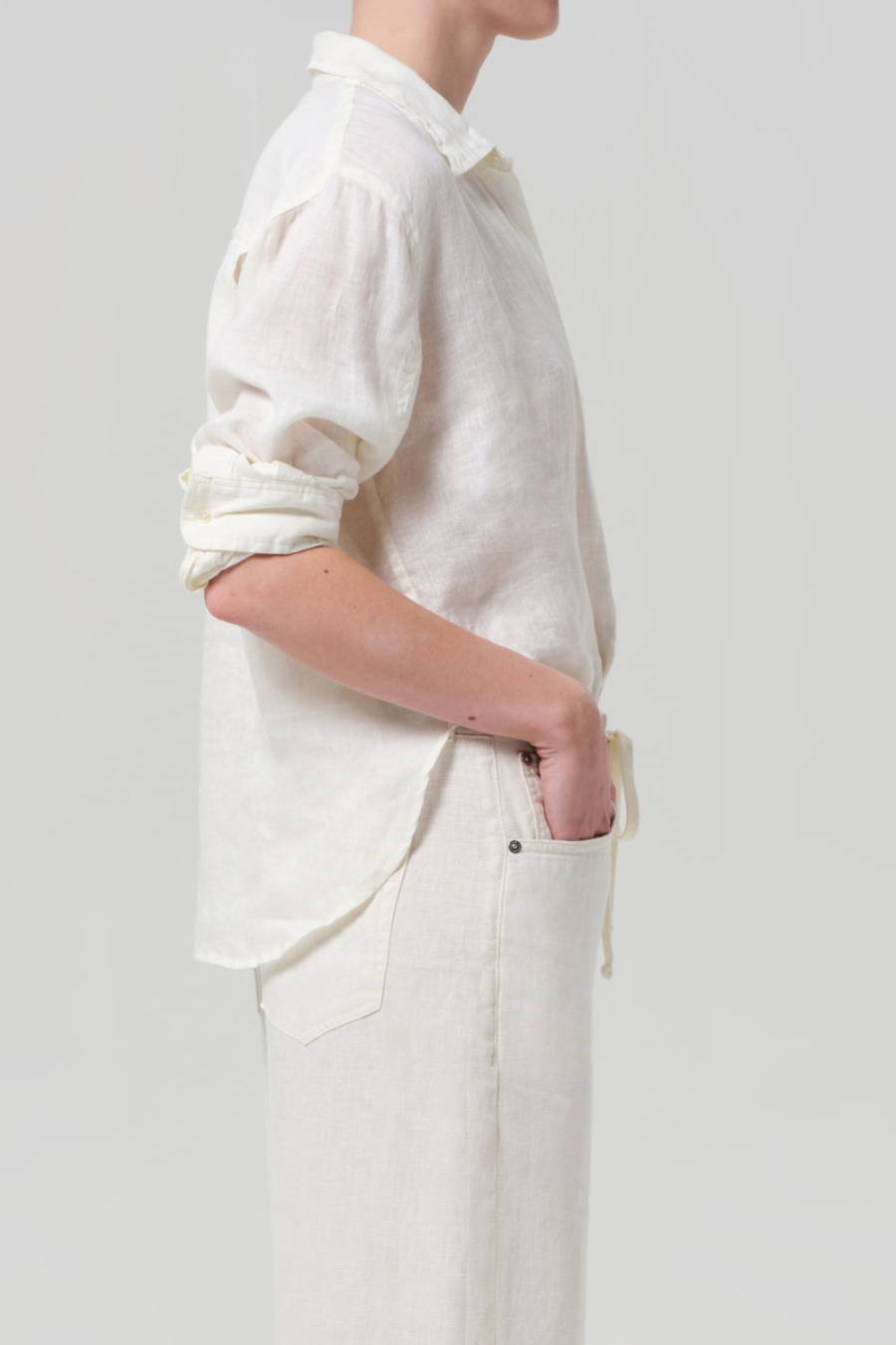 The best-selling Kayla Shirt just got a long awaited update. This wardrobe must-have features a slightly more fitted silhouette, perfect for day to night. This classic fit still has the soft drop shoulder, the perfect drape throughout the body, offering the perfect dimension to a timeless staple.