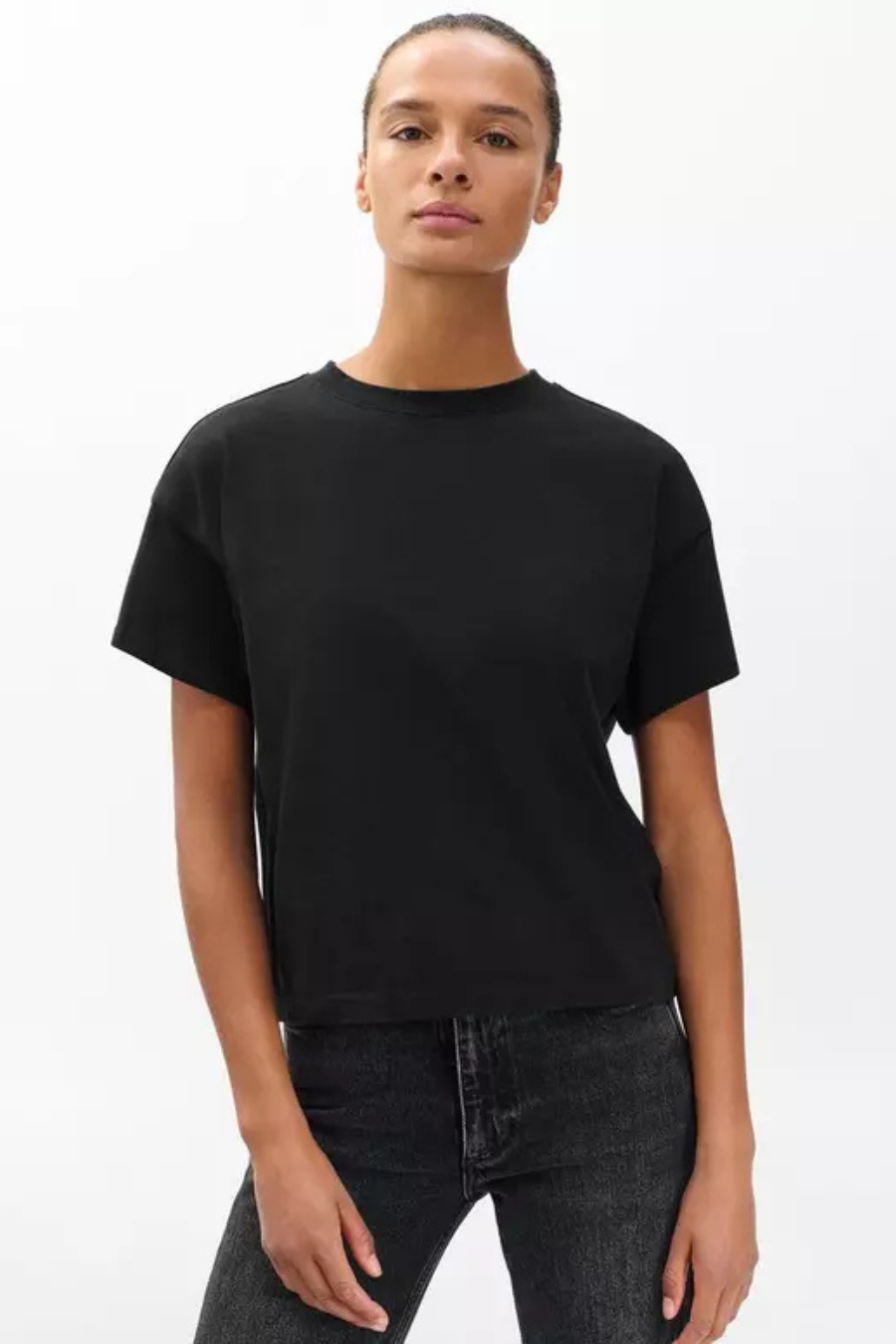 Proportions perfected. Our new short-sleeve tee is cut from heavier cotton jersey in a modern boxy fit. It plays well with everything in your closet: tailored trousers for contrast, denim for off-duty ease.
