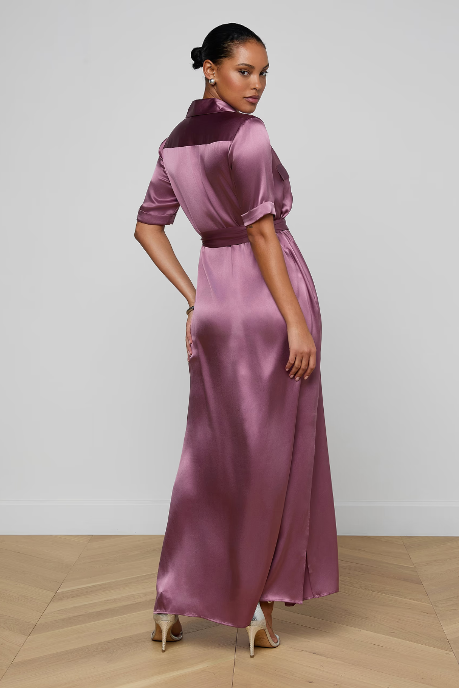 Effortless polish, no overthinking required. The Klement is cut from fluid silk that drapes beautifully, with subtle cargo-inspired pockets that add unexpected edge. A tie waist lets you shape it your way—cinched and defined or softly relaxed—making this maxi feel equal parts luxe, feminine, and easy to live in. This L'AGENCE classic is now back in mauve.