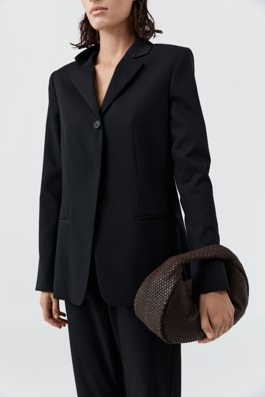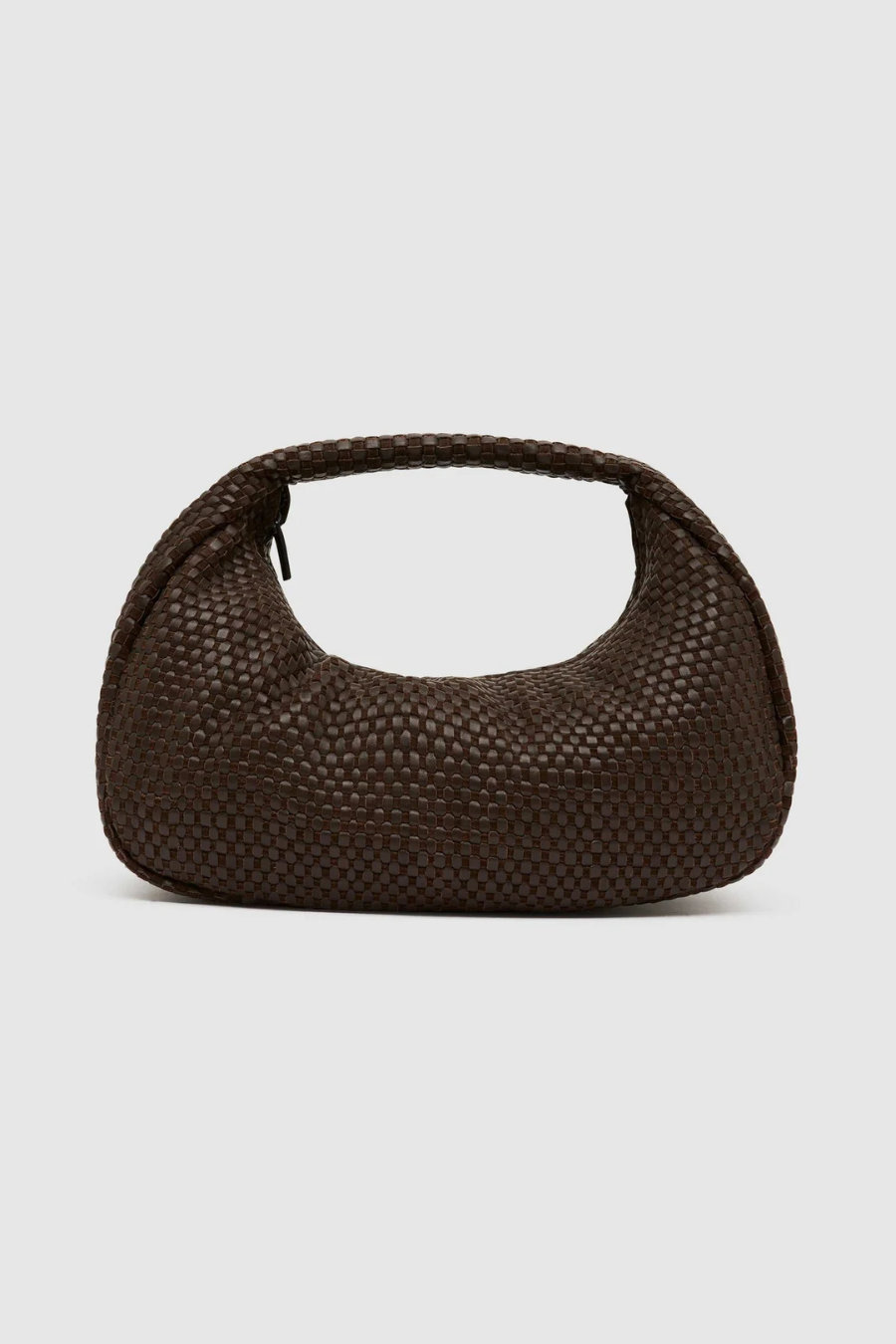 An elevated accessory, the Lattice Weave Bon Bon Bag features an intricately woven body, structured top handle, and a sleek clutch silhouette. Both refined and versatile, it adds subtle texture and makes an ideal accompaniment to any minimalist ensemble.