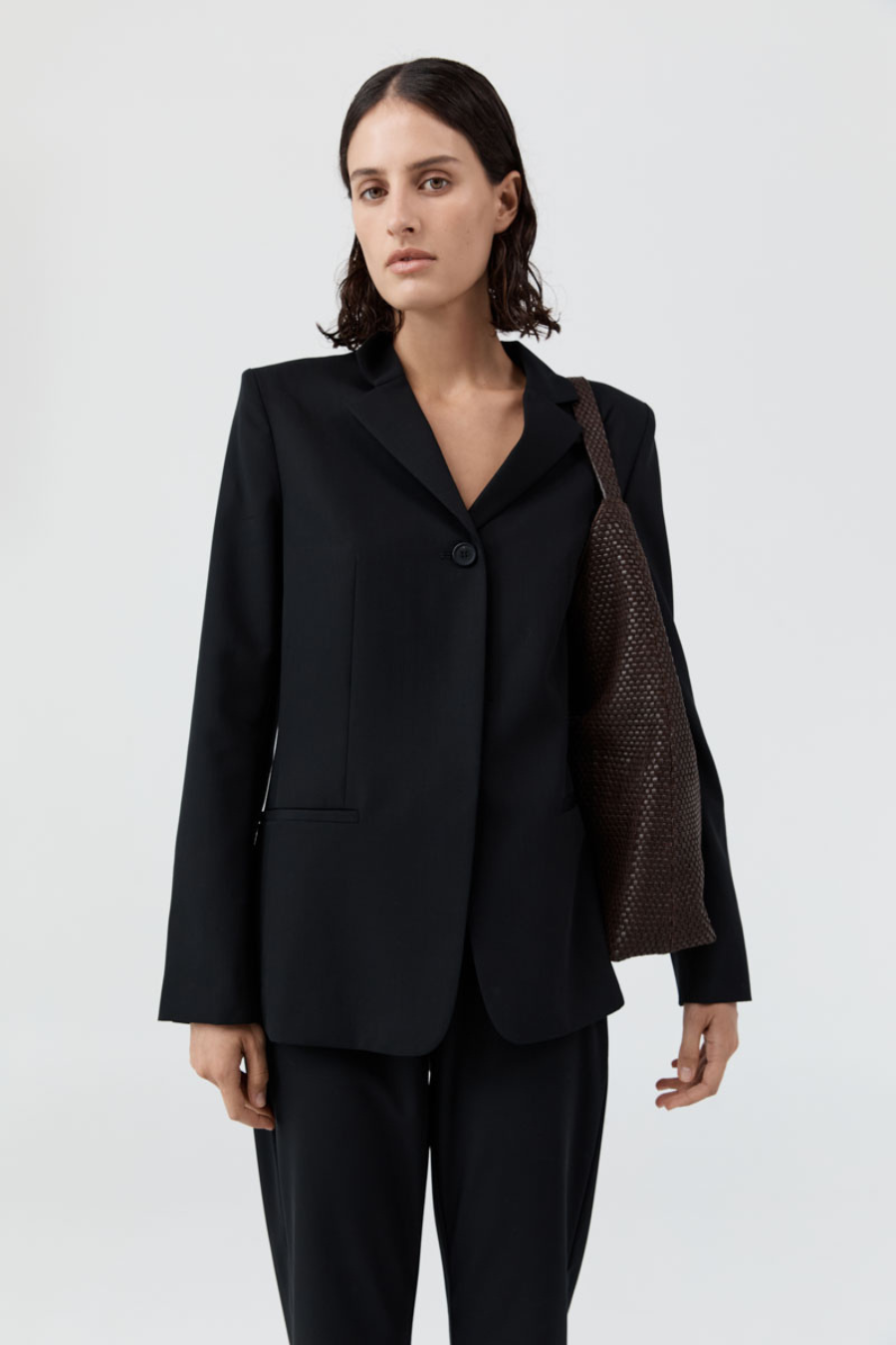 The Lattice Weave Large Tote plays on exaggerated shapes and organic forms, offering a relaxed structure and oversized silhouette. An internal zip pocket provides secure storage, while the spacious design ensures high-rotation wear. Pair with minimalist wardrobe heroes for a refined interplay between the exaggerated and the understated.