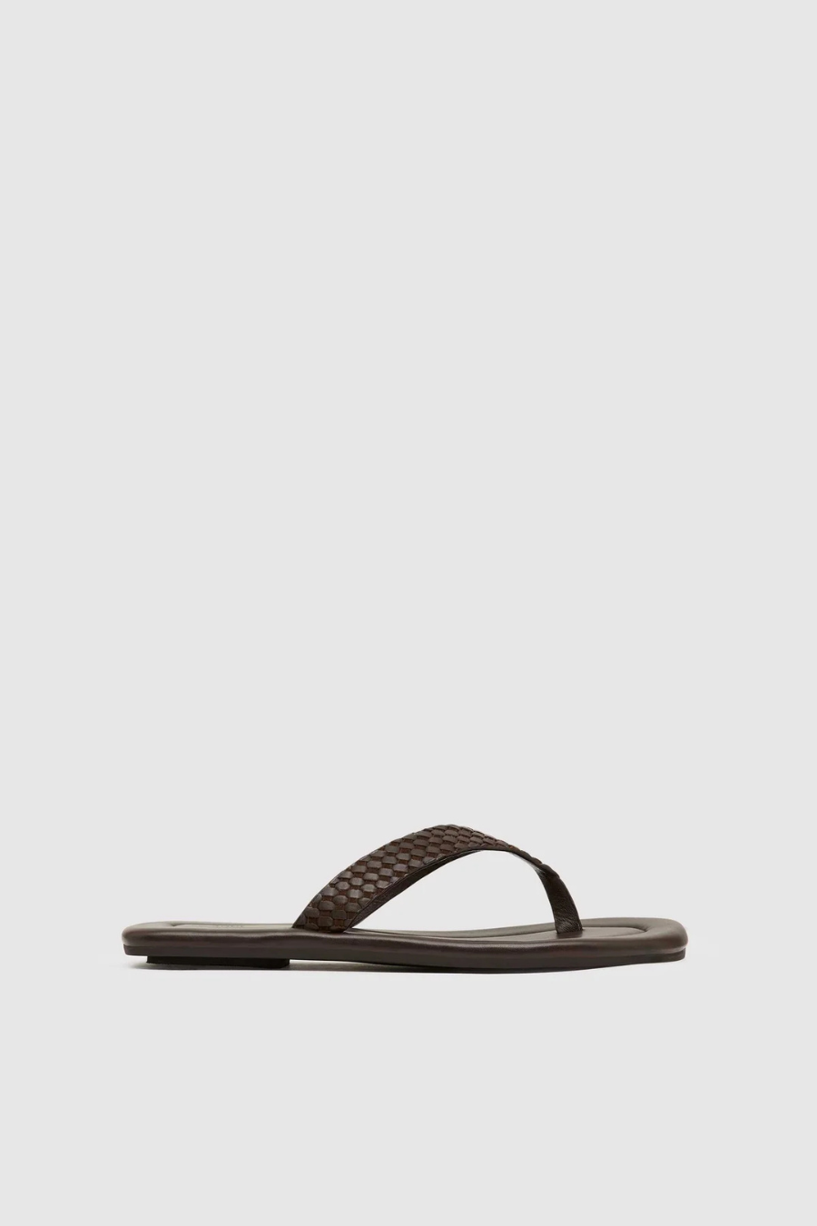 The Lattice Weave Thong blends comfort with minimalist design. Featuring a slip-on silhouette, thick lattice weave straps and completed with a soft padded insole for all-day ease. A timeless essential, perfect for effortless warm weather styling.