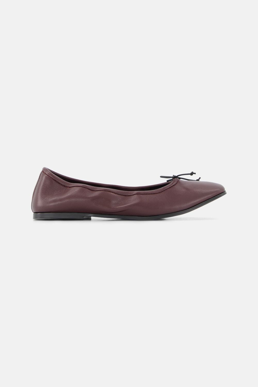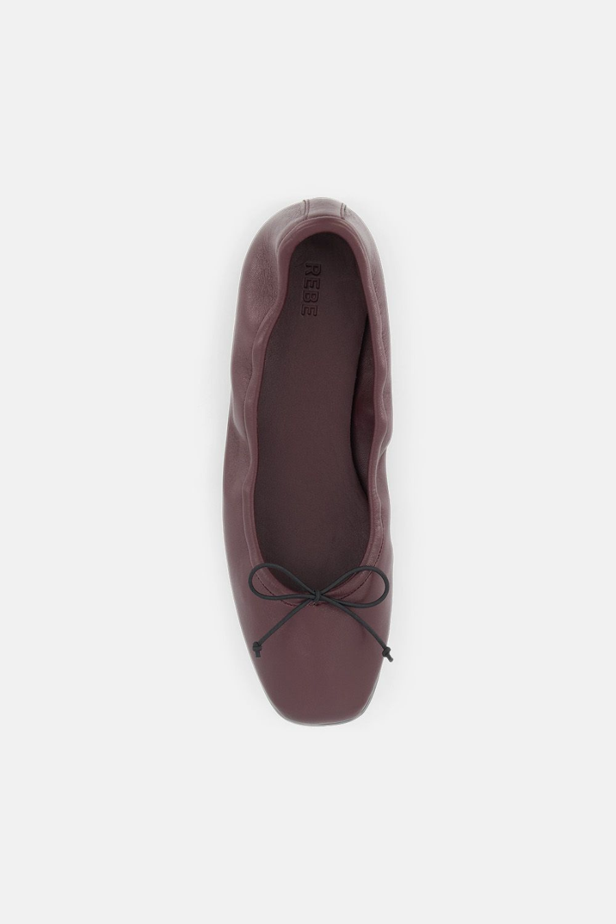 Our Ballet Flat is crafted from supple calf leather and features a square toe topped with a bow, a slight heel, and a rubber sole for durable wear.