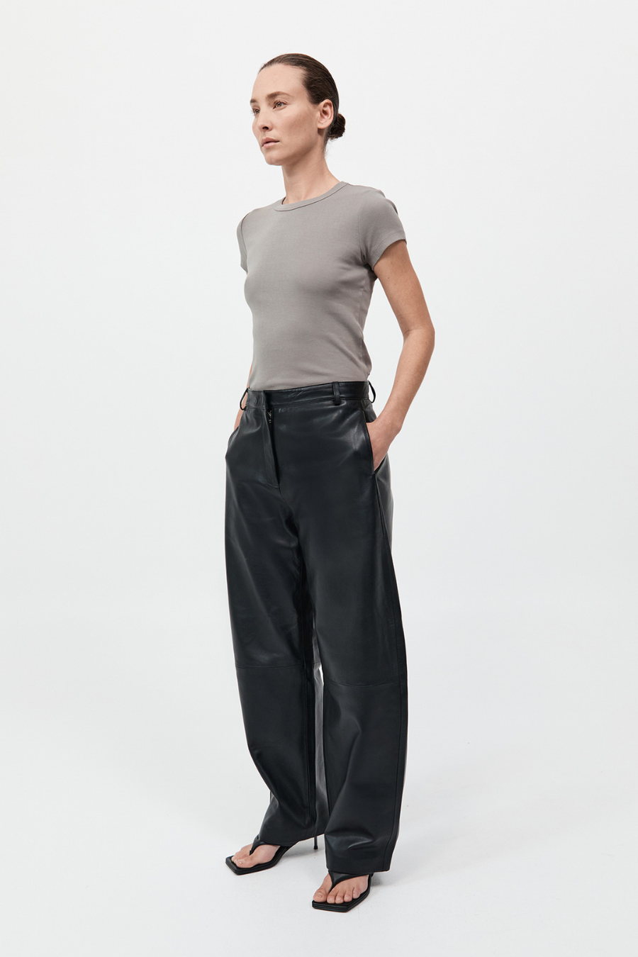 The Leather Balloon Pants feature a loose, voluminous balloon leg that creates a relaxed yet refined shape.