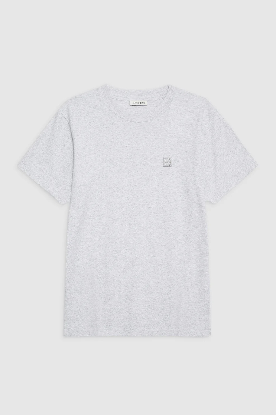 The Lili Tee Framed Monogram is an elevated basic made from a lightweight 100% cotton jersey fabrication in heather grey. This style features a tonal, framed ANINE BING monogram embroidered at the wearer's left chest.