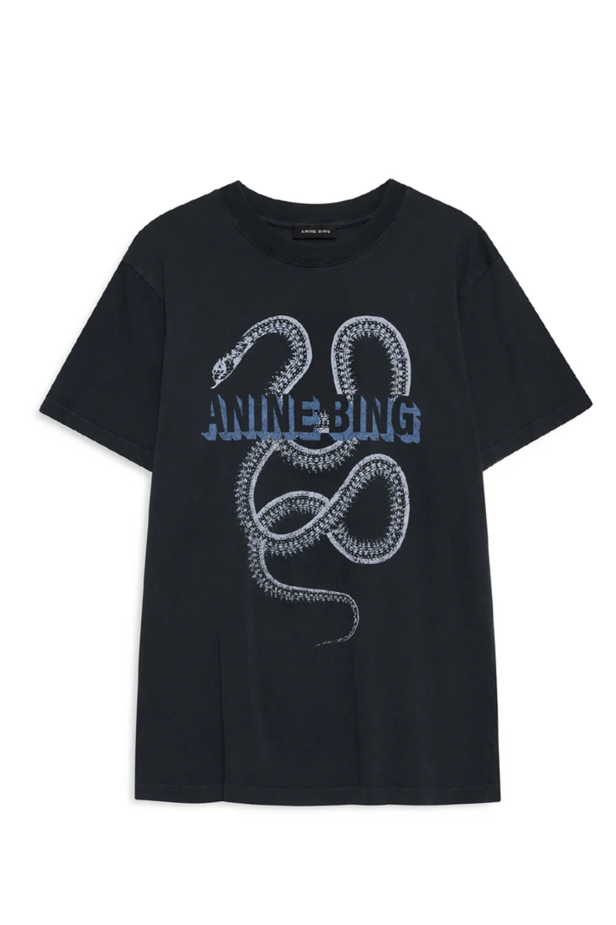 Crafted from soft cotton jersey in a washed black finish, this vintage-inspired tee delivers effortless style. The relaxed silhouette pairs with a ribbed crew neck for understated comfort, while the distinctive blue snake graphic from ANINE BING adds a subtle edge to this wardrobe essential.