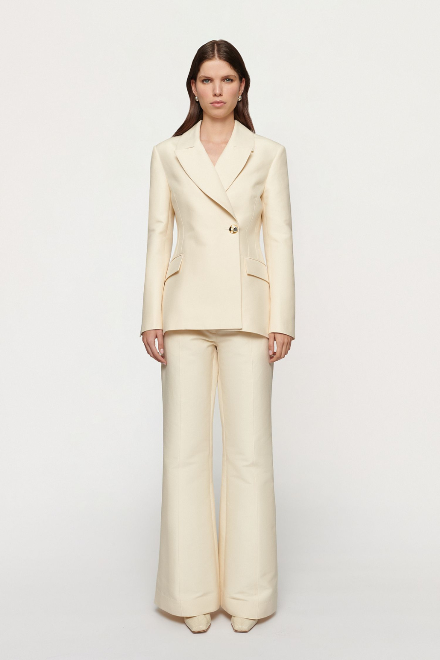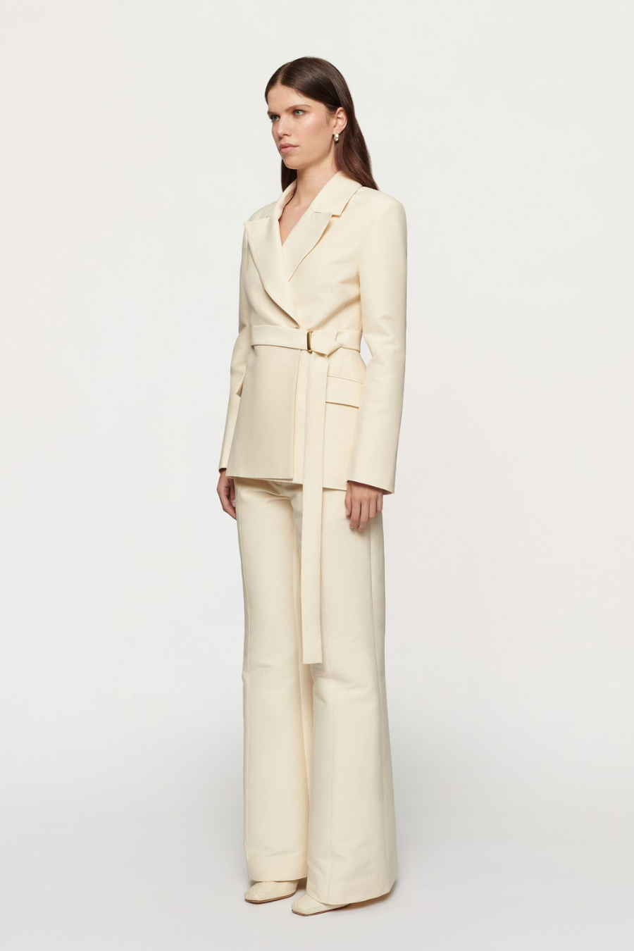 CLEA "Lincoln" blazer featuring a belted waist in wool-silk blend