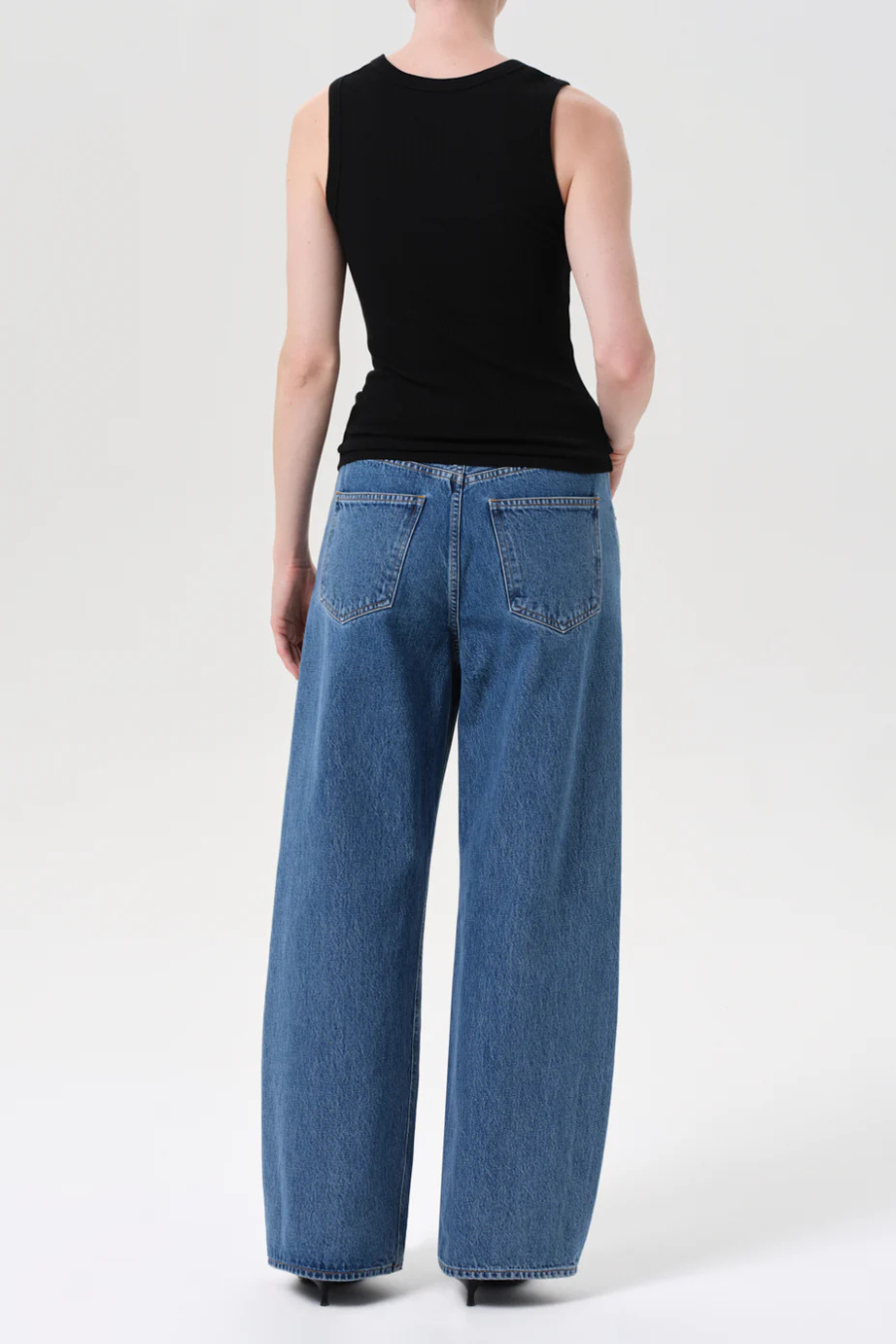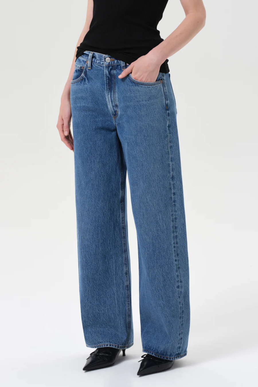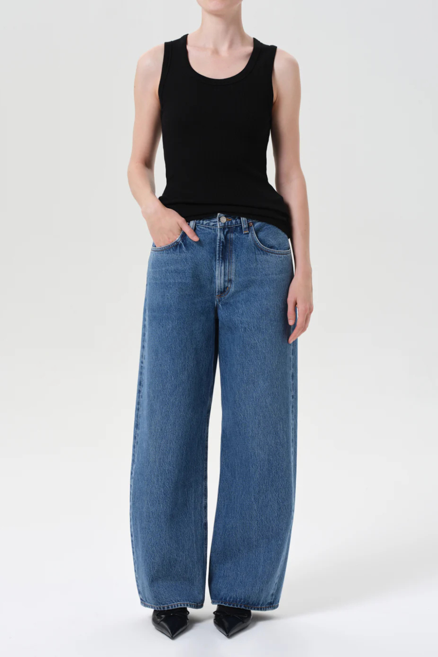 The Low Curve Jean is designed with a mid-rise waist, relaxed fit, and a subtle curved outseam that tapers for a refined yet effortless silhouette. Crafted from clean deep indigo, non-stretch denim in regenerative cotton, it offers a structured feel with a modern edge. Style with a crisp shirt and sleek boots for an understated yet elevated look.